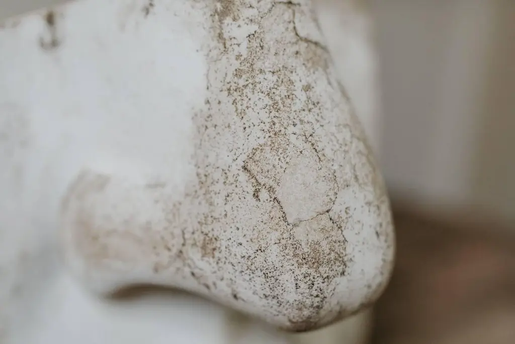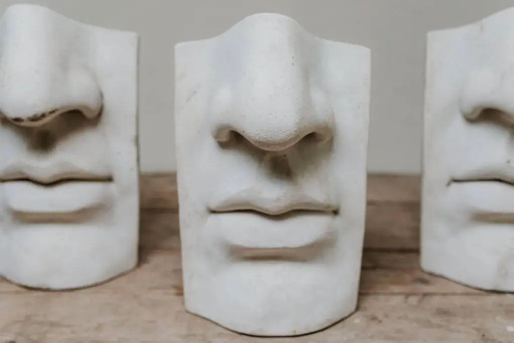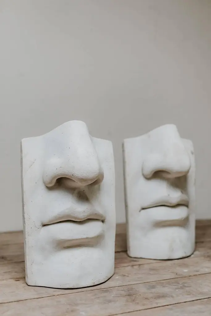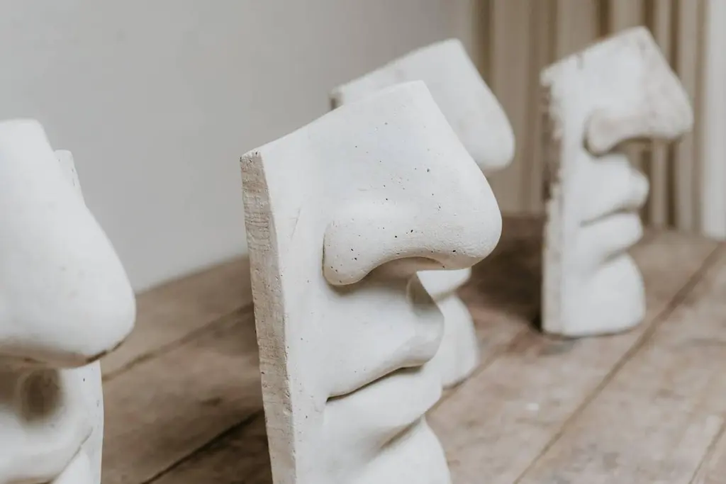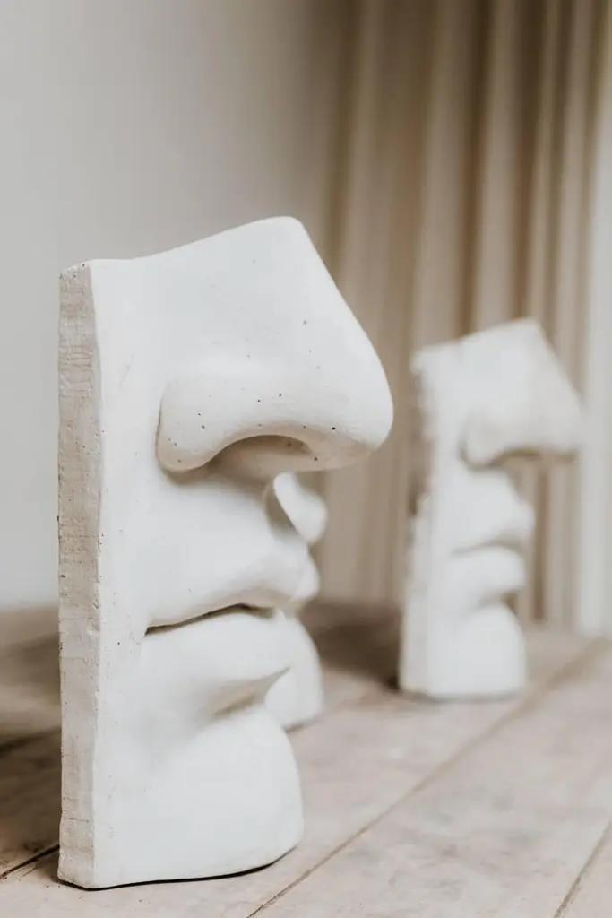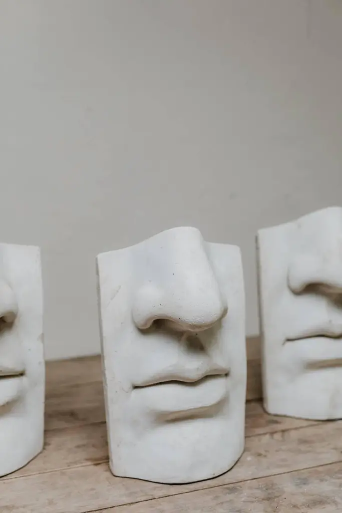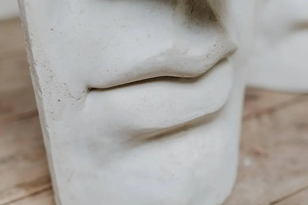 These plaster figures of nose and lips, David by Michelangelo, after the antique, were made in the 1950s by students of an Academy of Arts in Paris.