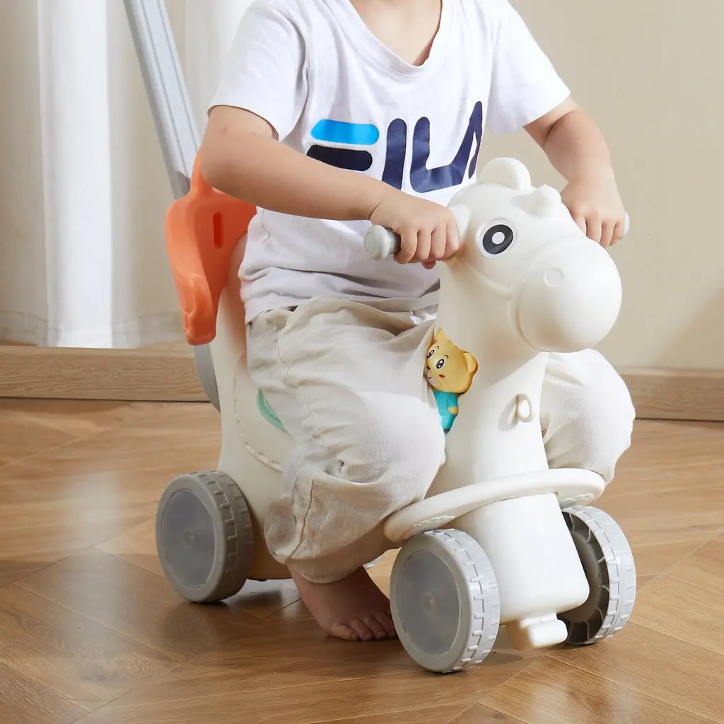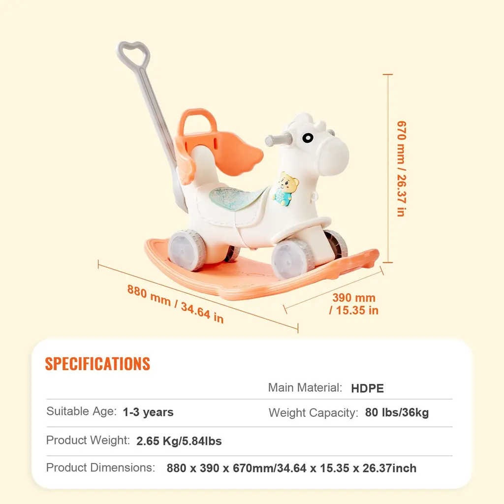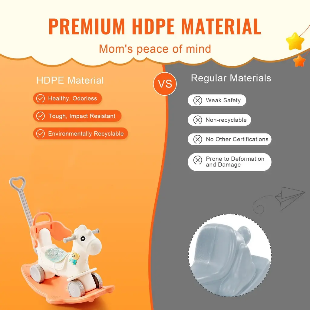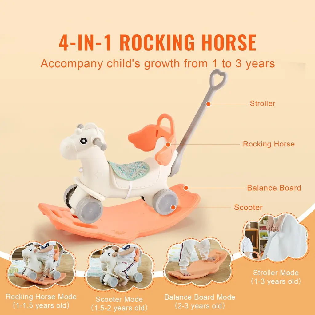 4 In 1 Rocking Horse For Toddlers With Wheels Push Handle And Sound - 34.64 X 15.35 X 26.37 Inch - Orange