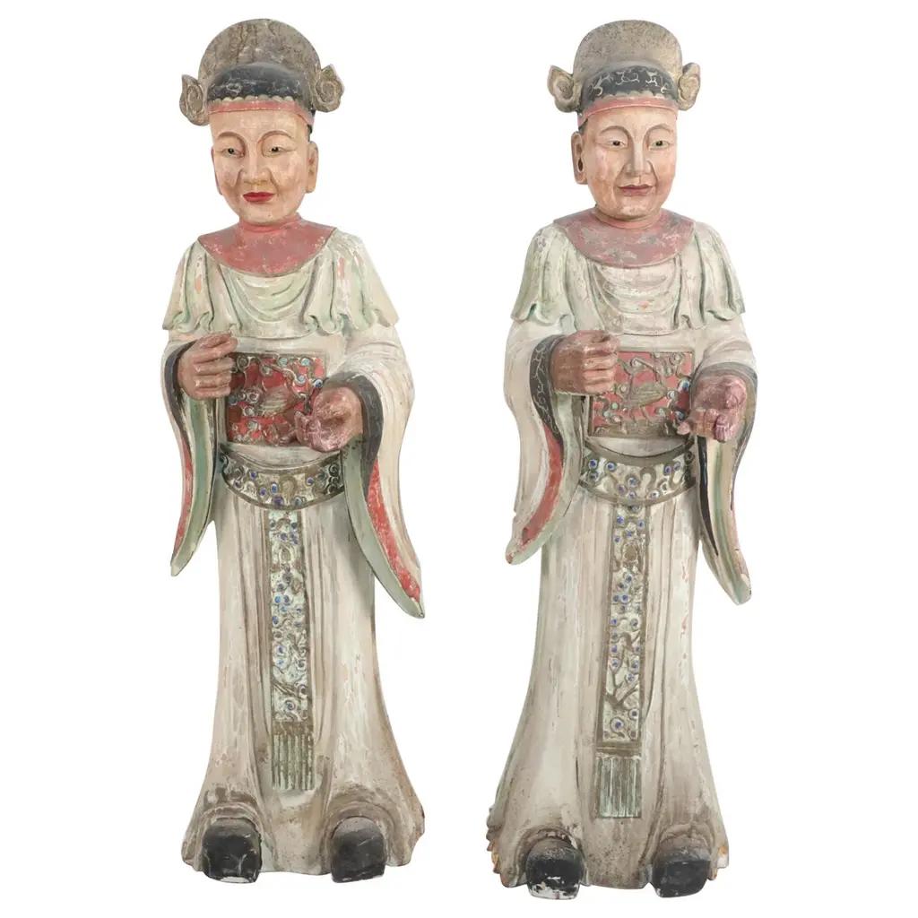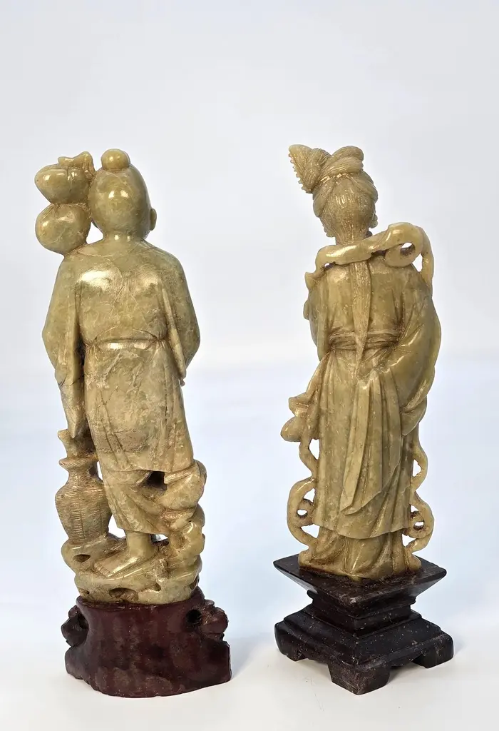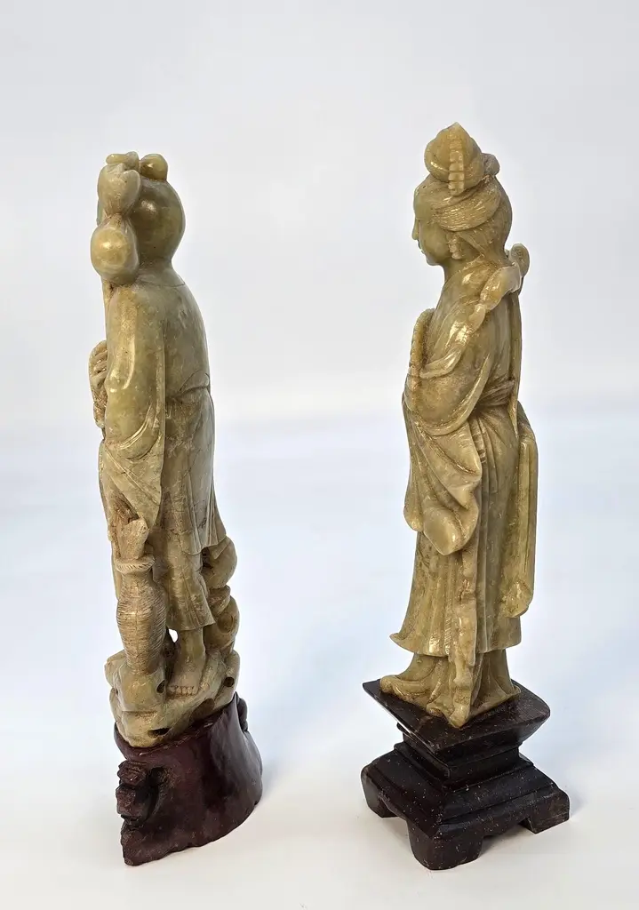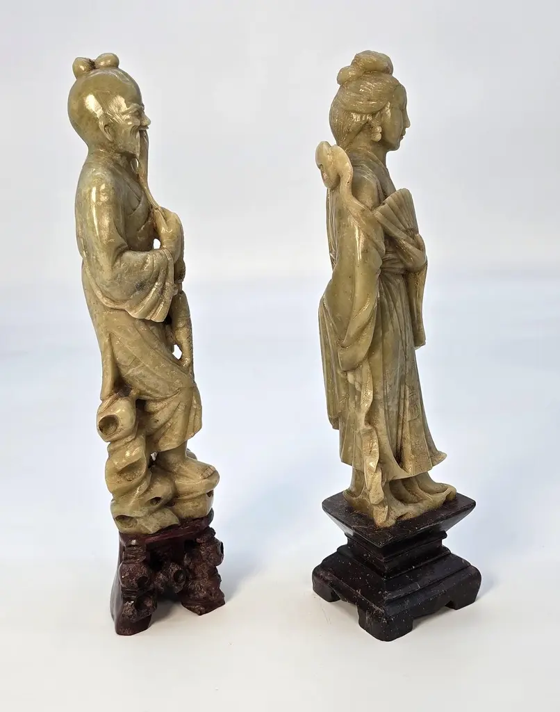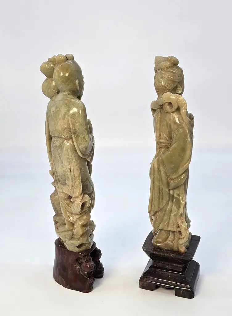 A Matched Pair Of Chinese Soapstone Hand Carved Figures Circa 1900