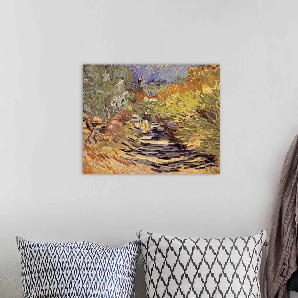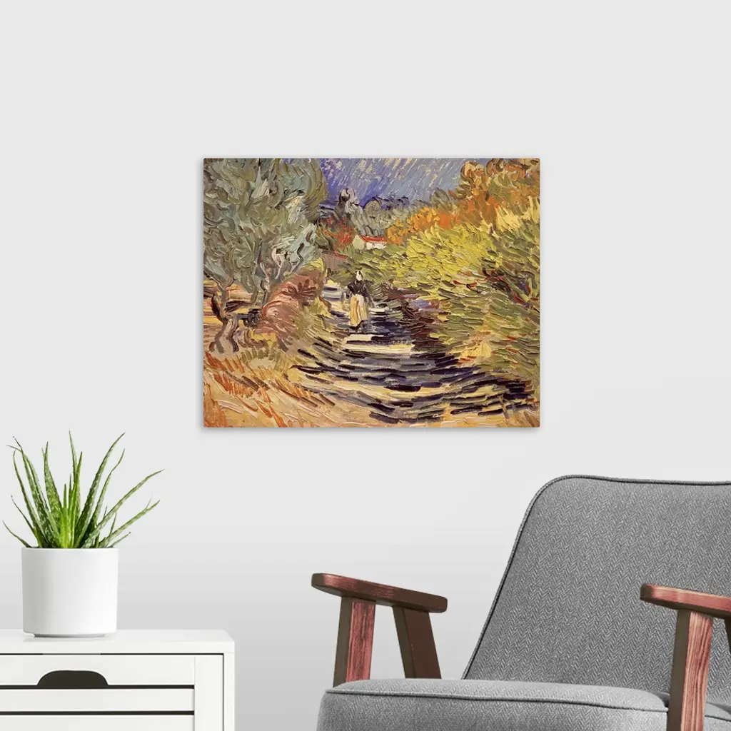 XIR18904 A Road in St. Remy with Female Figures, 1889 (oil on canvas) by Gogh, Vincent van (1853-90); 32.5x40.5 cm; Private Collection; Giraudon; Dutch, out of copyright