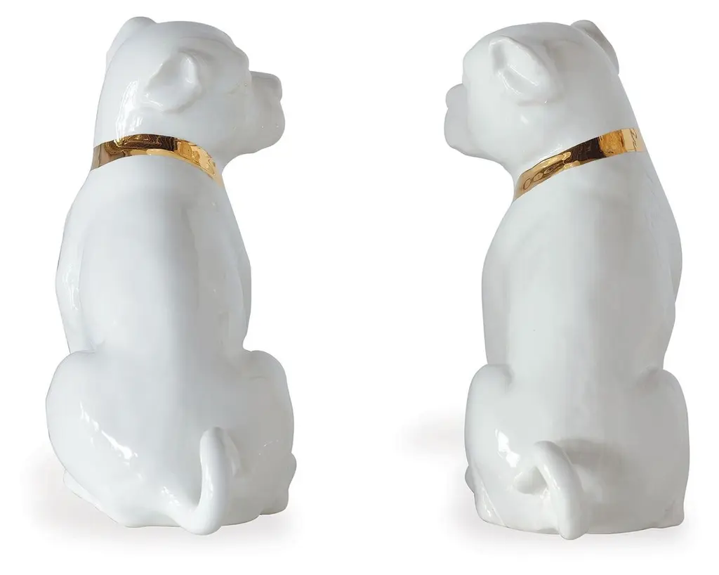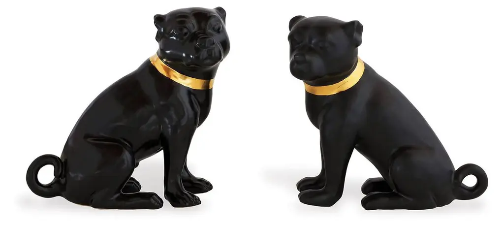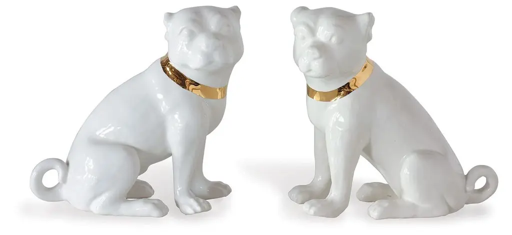 Designed by Madcap Cottage for Port 68, these decorative pug figures were created as an homage to the founders' beloved pets. Crafted of porcelain and glazed in white with golden collars, these charming accents make a handsome addition to any tabletop, shelf, or mantel.