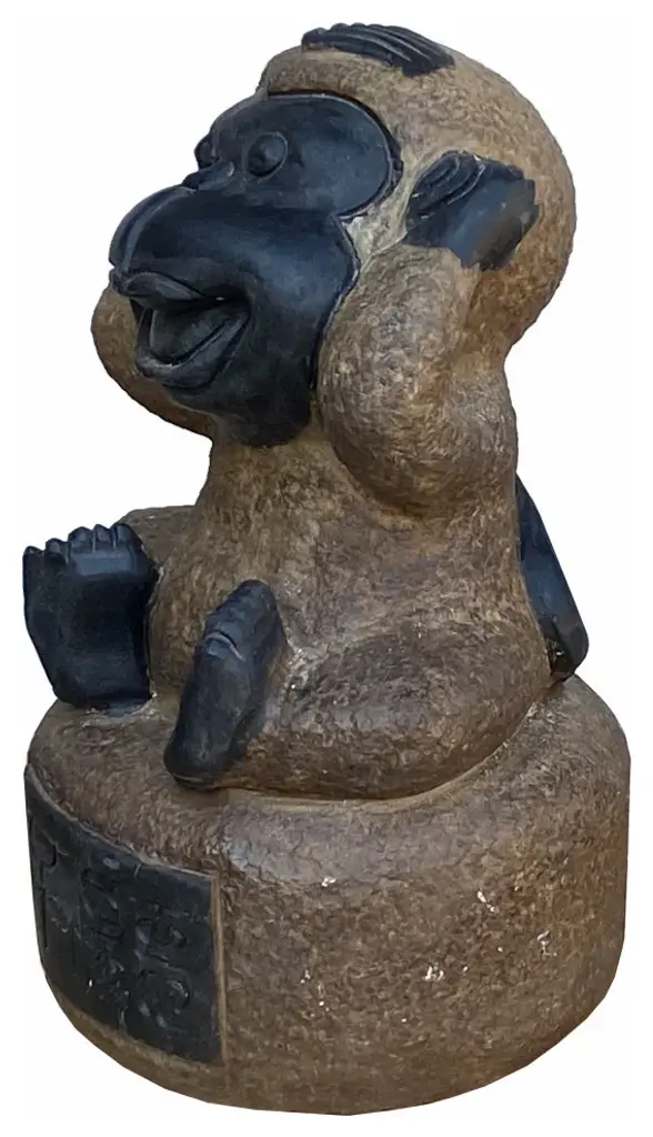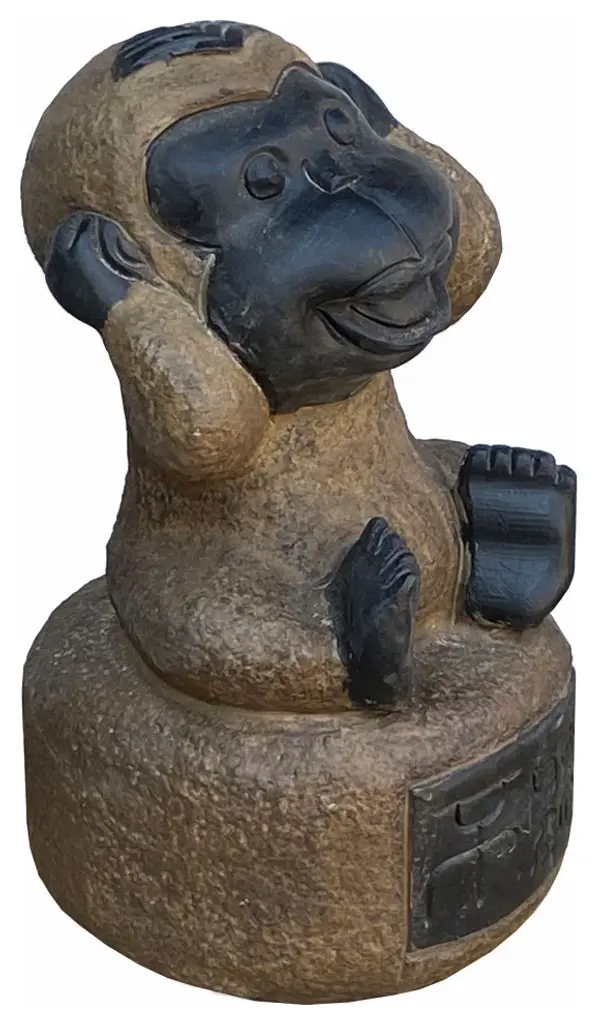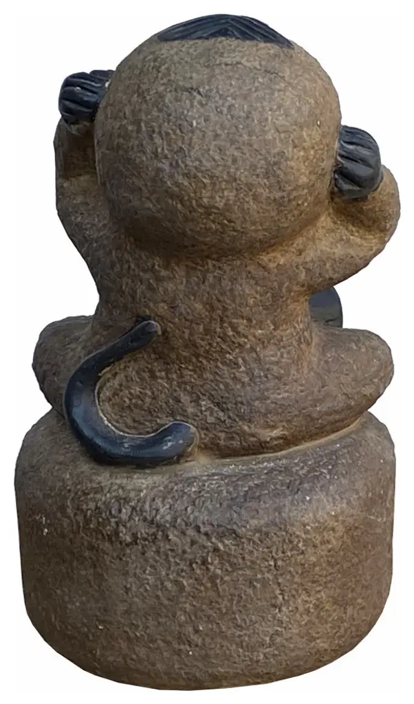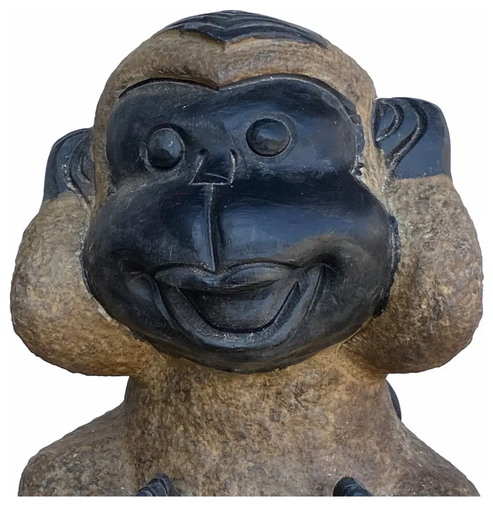 This is a decorative stone figure of a monkey / ape figure with two stone pattern color finish. listen not to what is contrary to propriety - hear no evil Dimensions: Dia 8"x h14"Origin: ChinaMaterial: StoneCondition: Natural stone marks, may have minor chip marks at the bottom
