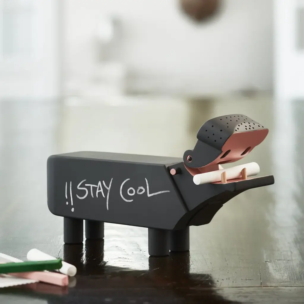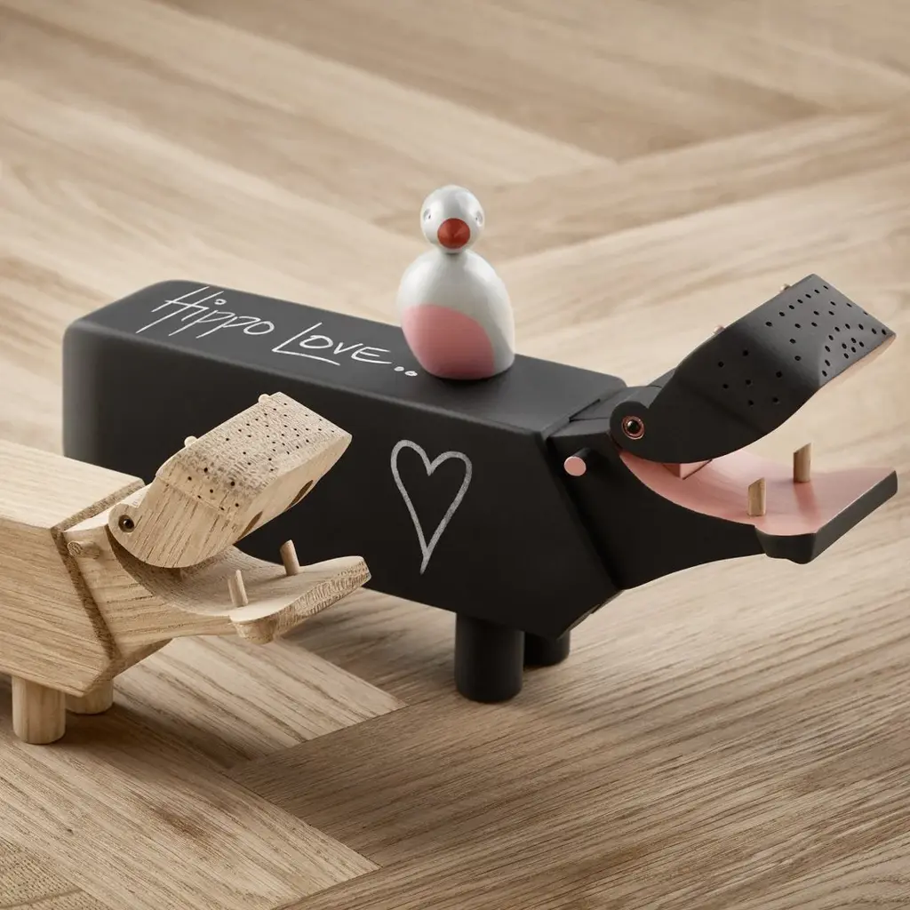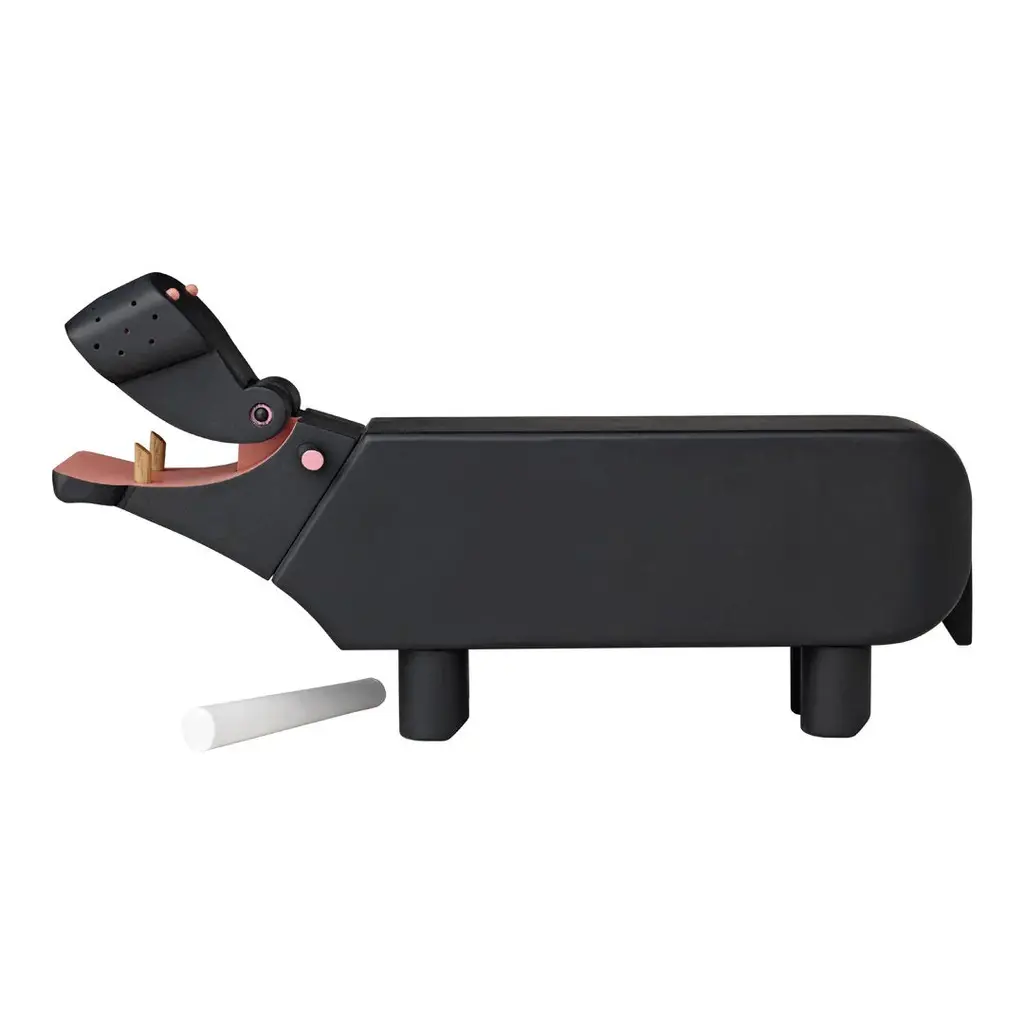 Kay Bojesen's many figures are popular with children and adults alike, and this one is no exception. The hippo was originally designed in 1955 to look after the designer's pencil on his desk, and this updated version keeps up the tradition! The hippo is made of beech, painted with blackboard paint, so you can write messages, little notes or use it as a desktop checklist. To make it easier to write on, this hippo is approximately 2 cm taller and wider than the one currently in the range. The white chalk is provided in the box. A Kay Bojesen classic that will accompany its owner throughout life's journey.