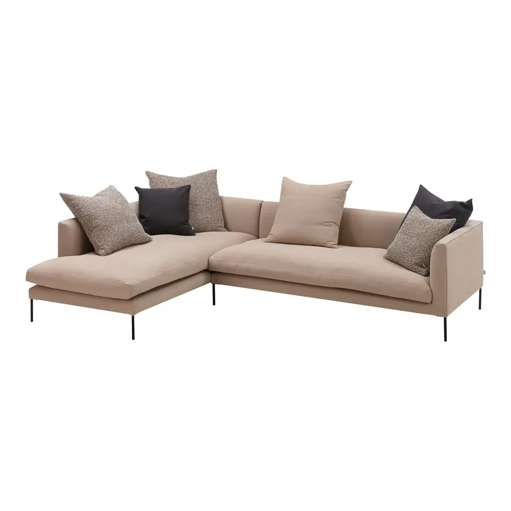 Designed with complementary trays in black stained oak, the Surface Sofa prompts a new take on modularity with engaging levels and dimensions that speak volumes in any spatial context. Thin legs in black powder-coated aluminium add the finishing touches, making the modules soar gracefully above the ground. Left Facing Setup Includes: [1] Module 10 (2.5 Seater, Right) [1] Module 19 (2 Seater, Long, Terminal Left) Right Facing Setup Includes: [1] Module 9 (2.5 Seater, Left) [1] Module 20 (2 Seater, Long, Terminal Right)