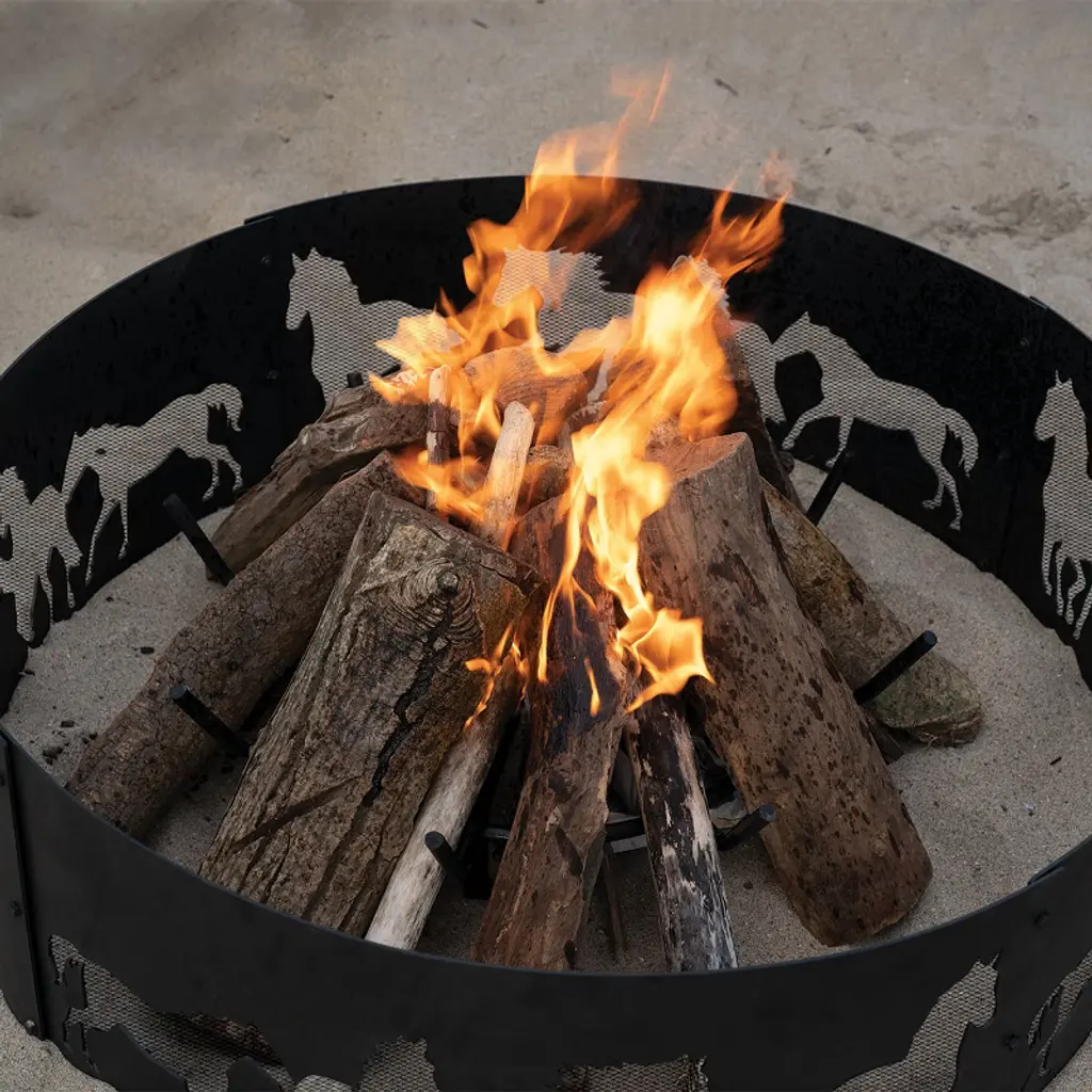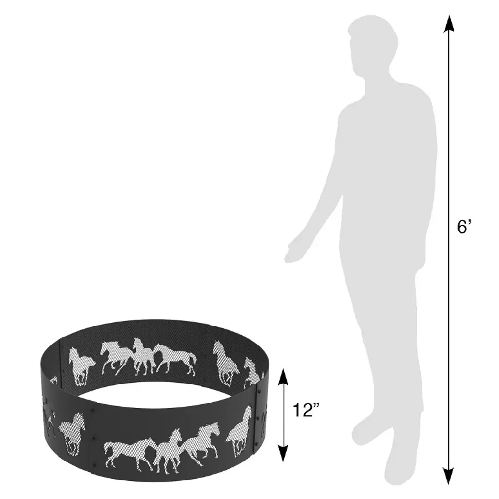 Blue Sky Outdooor Living Fire Ring - 36 x 12" Fire Ring with Horse Cutout Design in Black & Simple Assembly - FR361208HRS