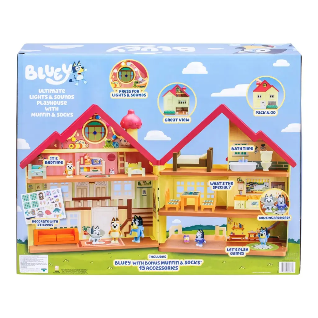 Bluey Ultimate Lights & Sounds Playhouse With Muffin & Socks (Target Exclusive): Animation Doll Playsets With Figures