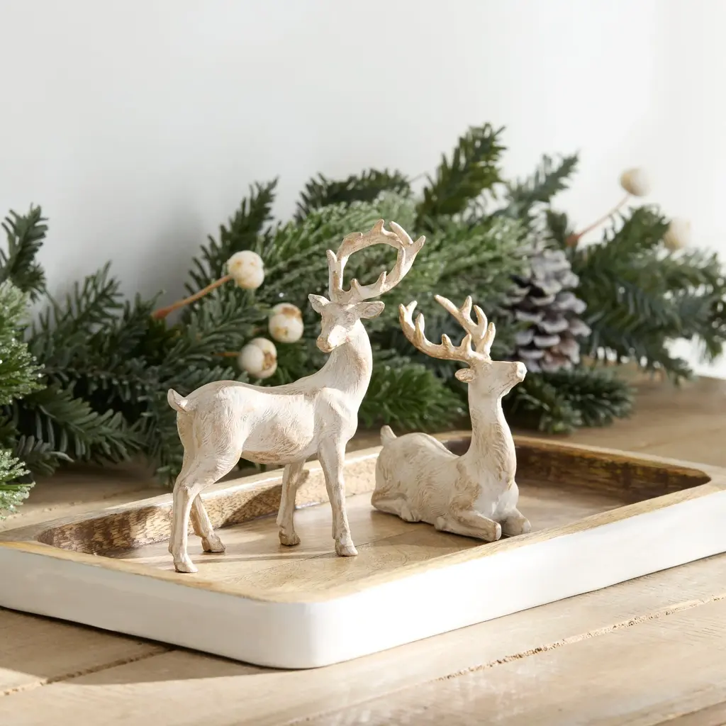 Enhance your winter décor with this beautiful set of Deer Figurines. Featuring two assorted designs, this set is a great fit for your chic woodland or traditional style of holiday décor. The wintry white tones paired with the brushed gold finish are the perfect combination to create a memorable display. The quality polyresin composition is sure to endure for seasons to come. Add the pieces to your mantle or bookshelf display or use them as gifts for a special someone in your life.