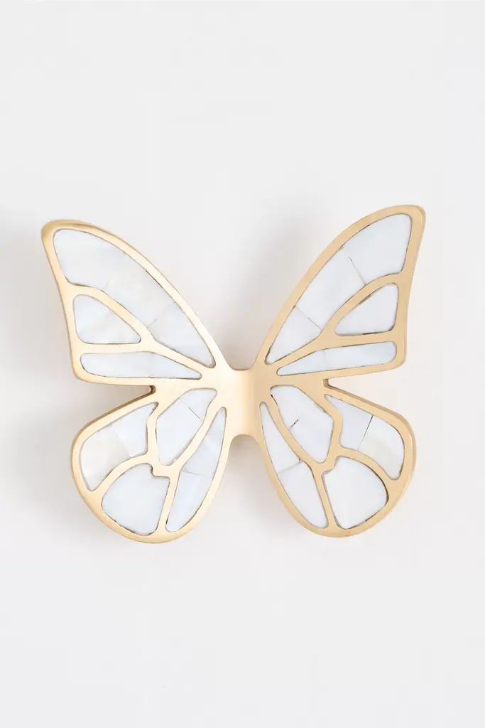 Butterfly Figurine Golden Luster & White