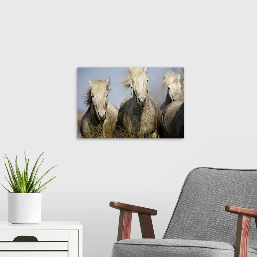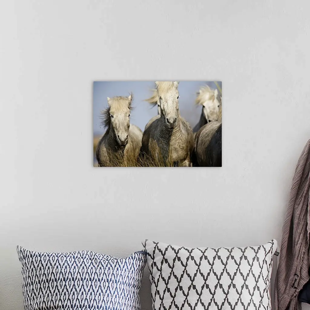 Camargue horses running at sunset, Arles, France wall art for home and office decor. Discover canvas art prints, photos, mural, big canvas art and framed wall art in GreatBigCanvas.com's varied collections.