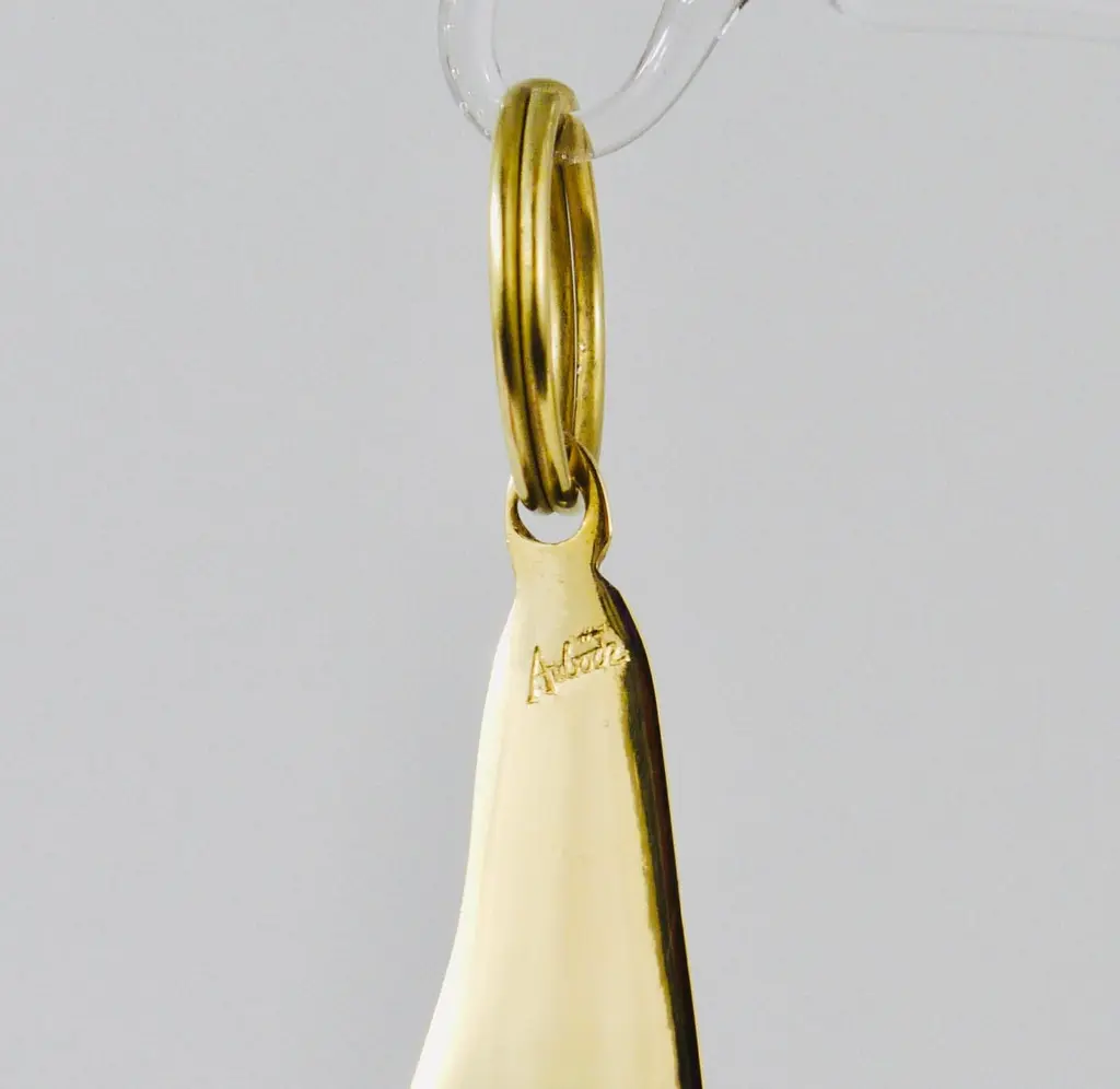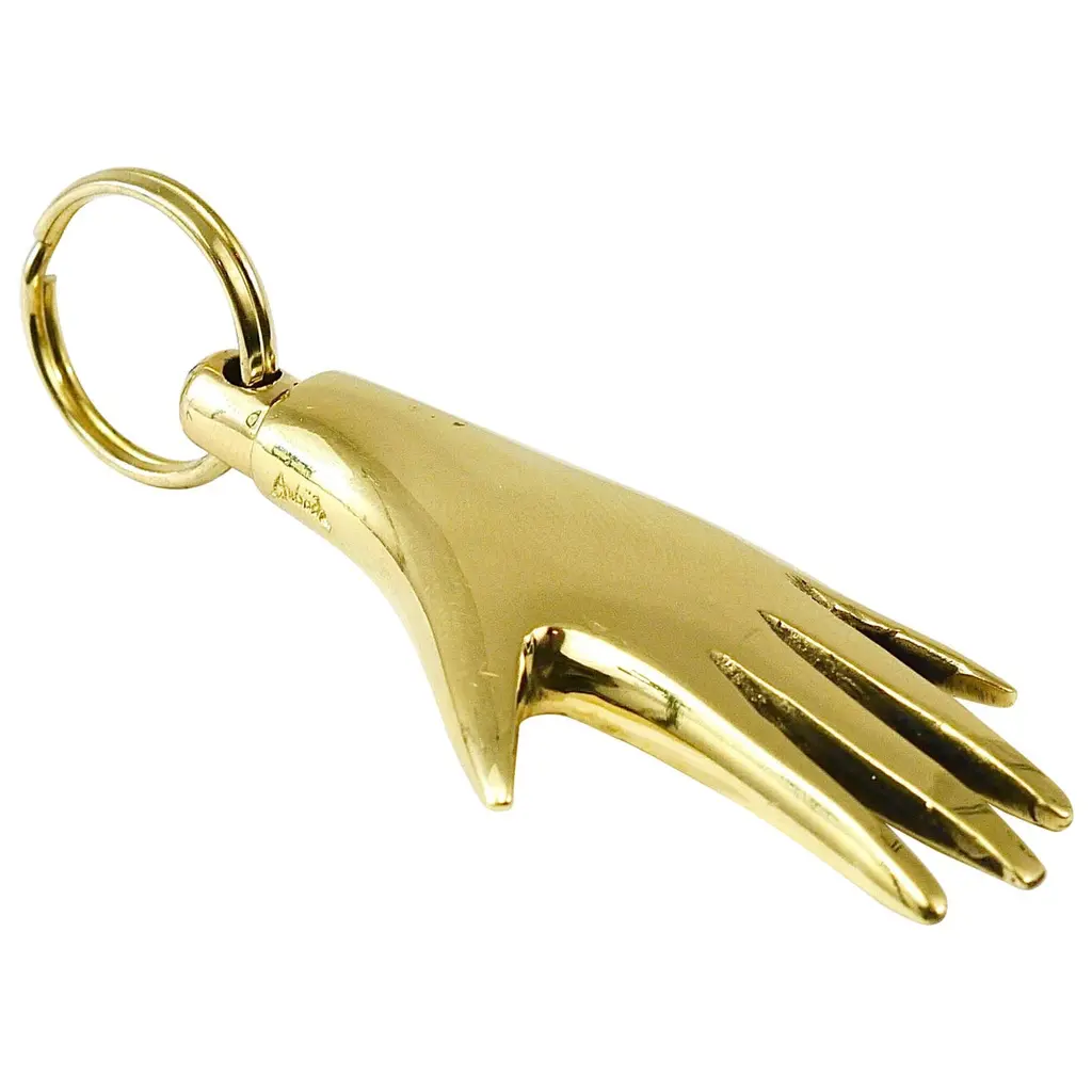 A charming modernist foot keyring / keyholder / keychain, designed by Carl Auböck in the 1950s. Handmade of solid polished brass by Werkstätte Auböck in Austria. Fully stamped and marked. length including ring: appr. 3 inchesThis is a handcrafted piece, each piece and finish will differ slightly. Small nicks on the surface are evidence of the handmade production process and should not be considered defects.