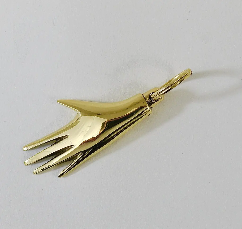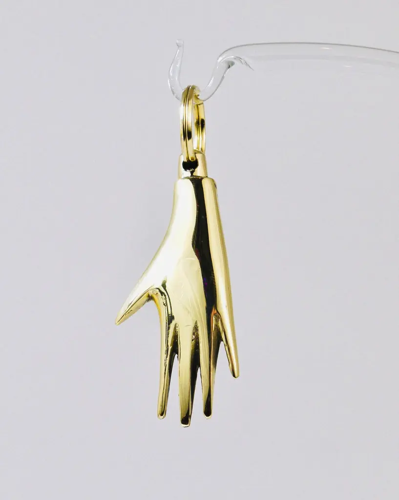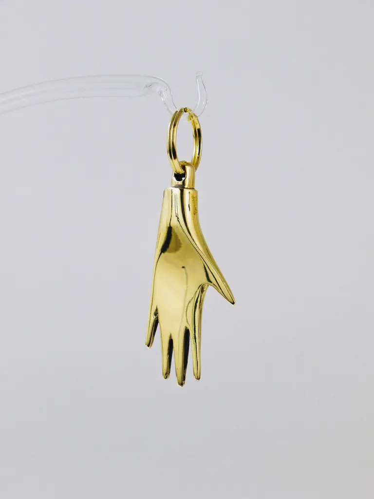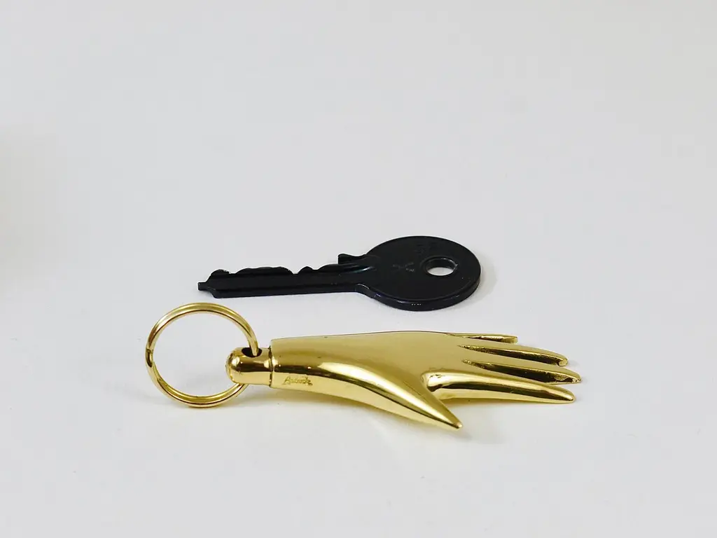 A charming modernist hand keyring / key holder / keychain, designed by Carl Auböck in the 1950s. Handmade of solid polished brass by Werkstätte Auböck in Austria. Fully stamped and marked.Length including ring: appr. 3 inchesThis is a handcrafted piece, each piece and finish will differ slightly. Small nicks on the surface are evidence of the handmade production process and should not be considered defects.