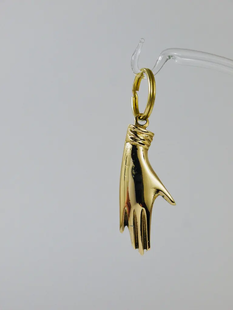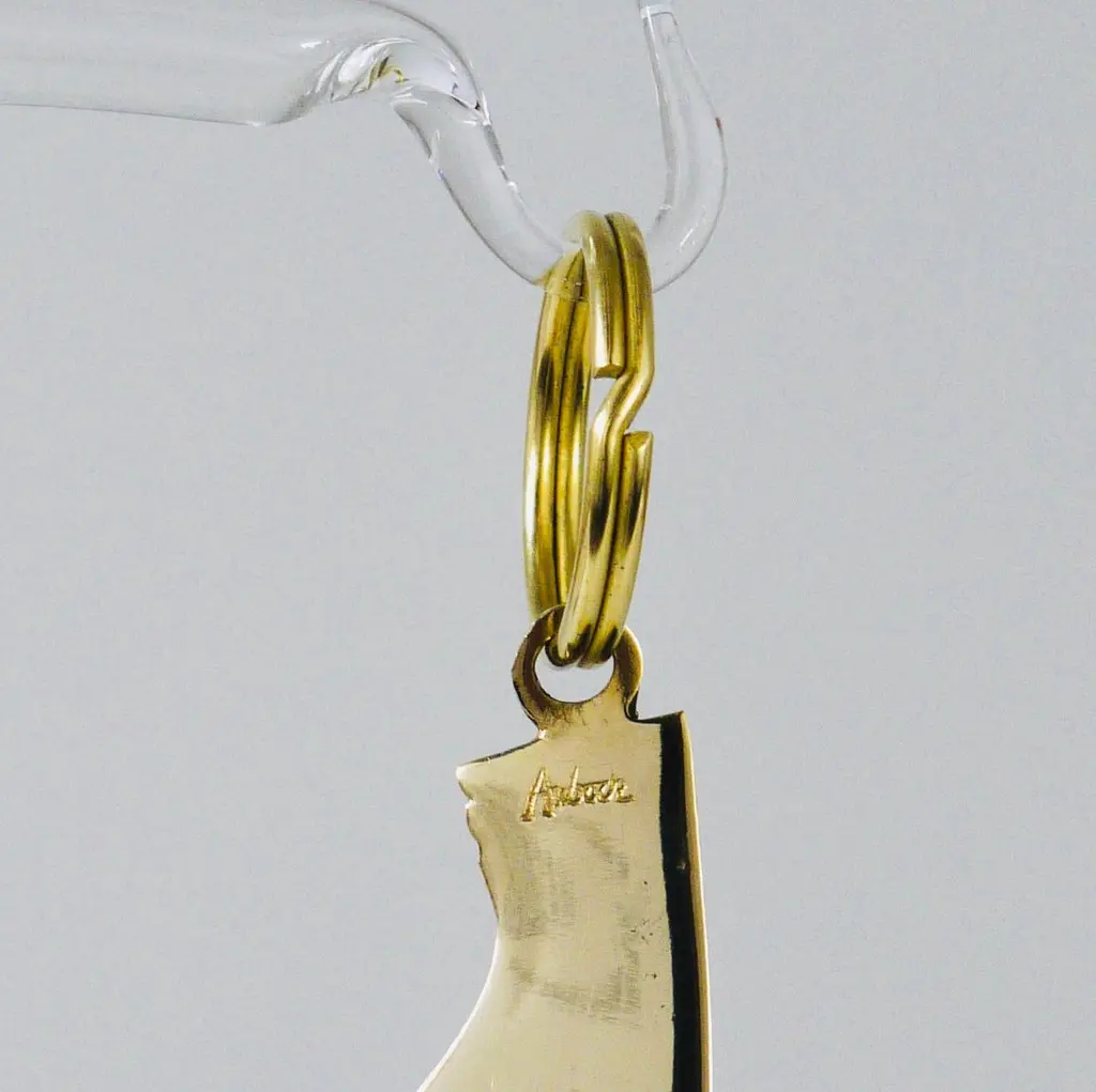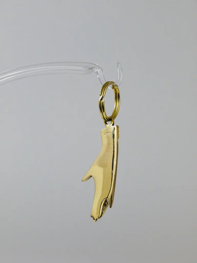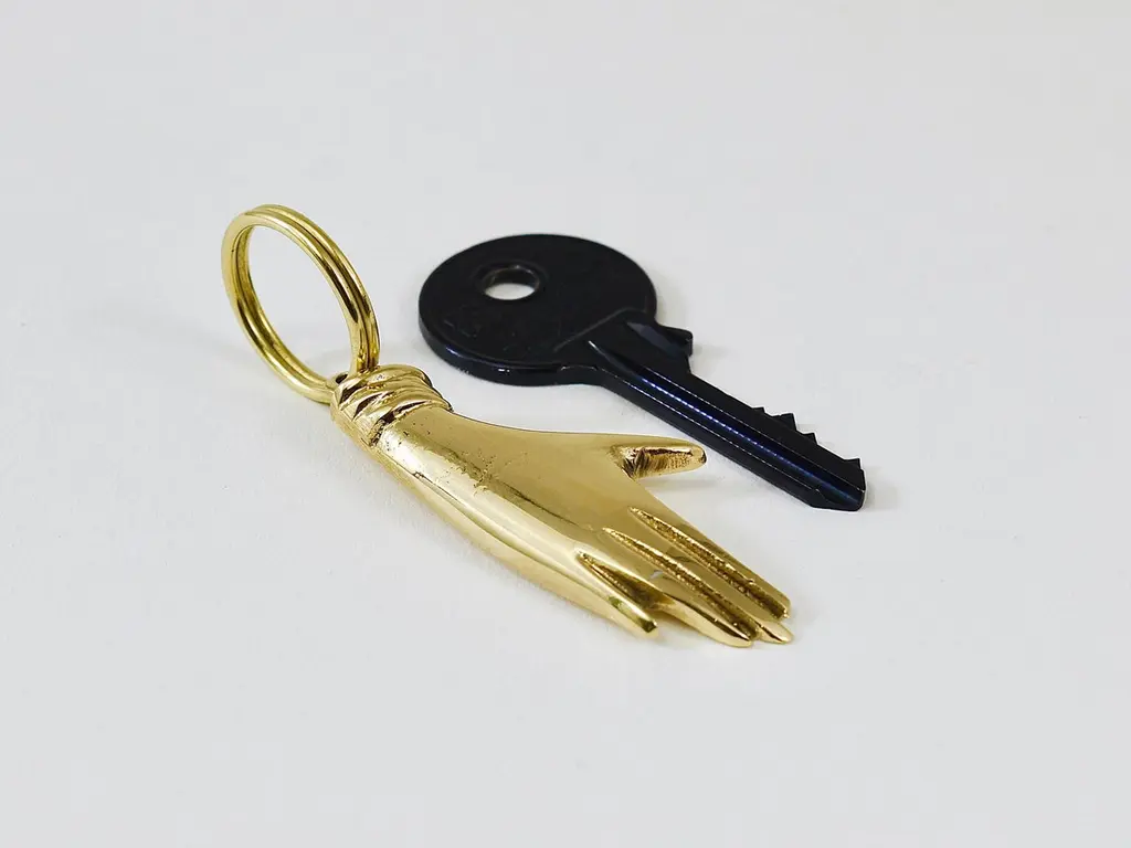 A charming modernist Hand keyring / keyholder / keychain, designed by Carl Auböck in the 1950s. Handmade of solid polished brass by Werkstätte Auböck in Austria. Fully stamped and marked. Measure: Length including ring: appr. 2 3/4 inchesThis is a handcrafted piece, each piece and finish will differ slightly. Small nicks on the surface are evidence of the handmade production process and should not be considered defects.