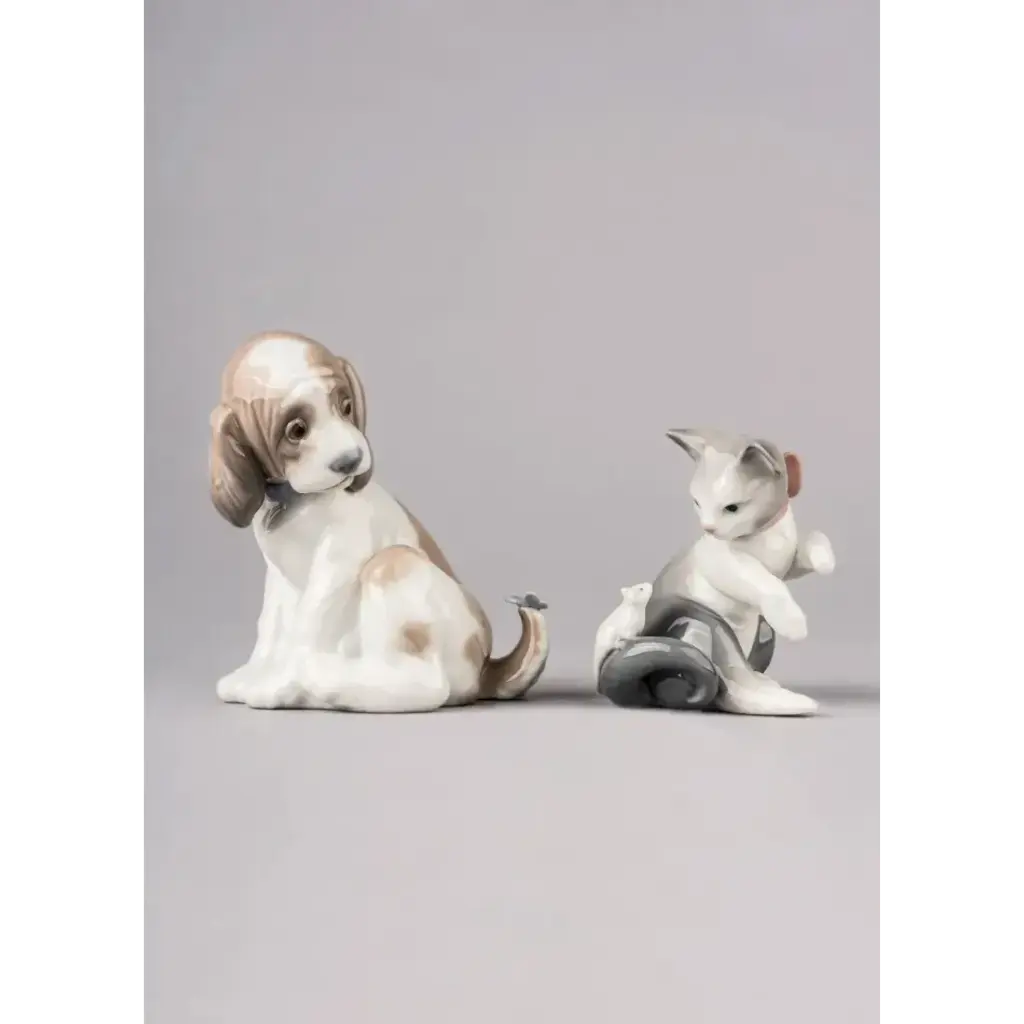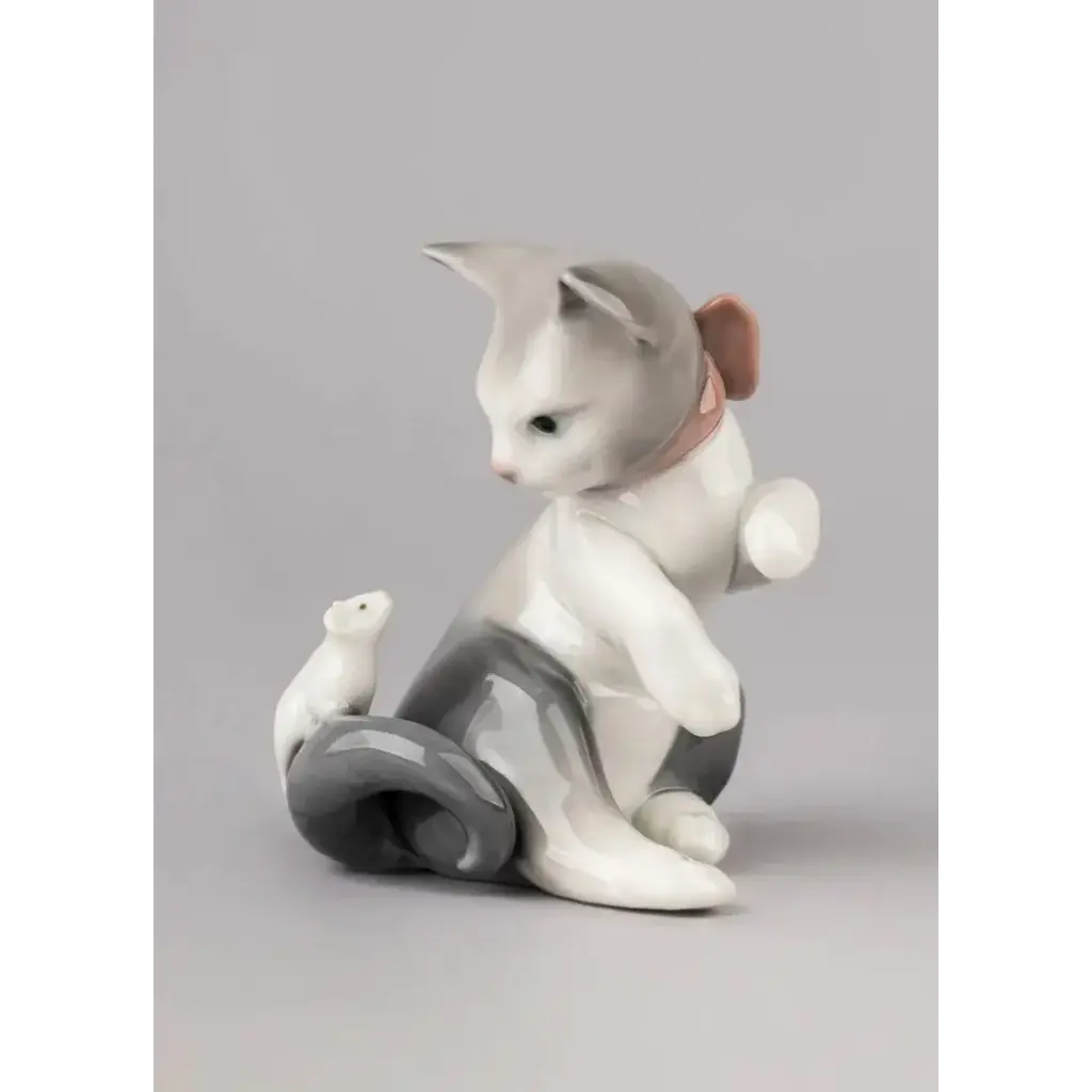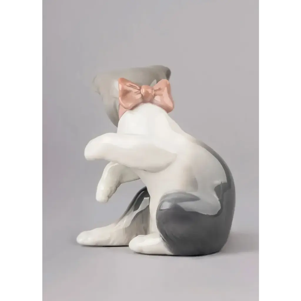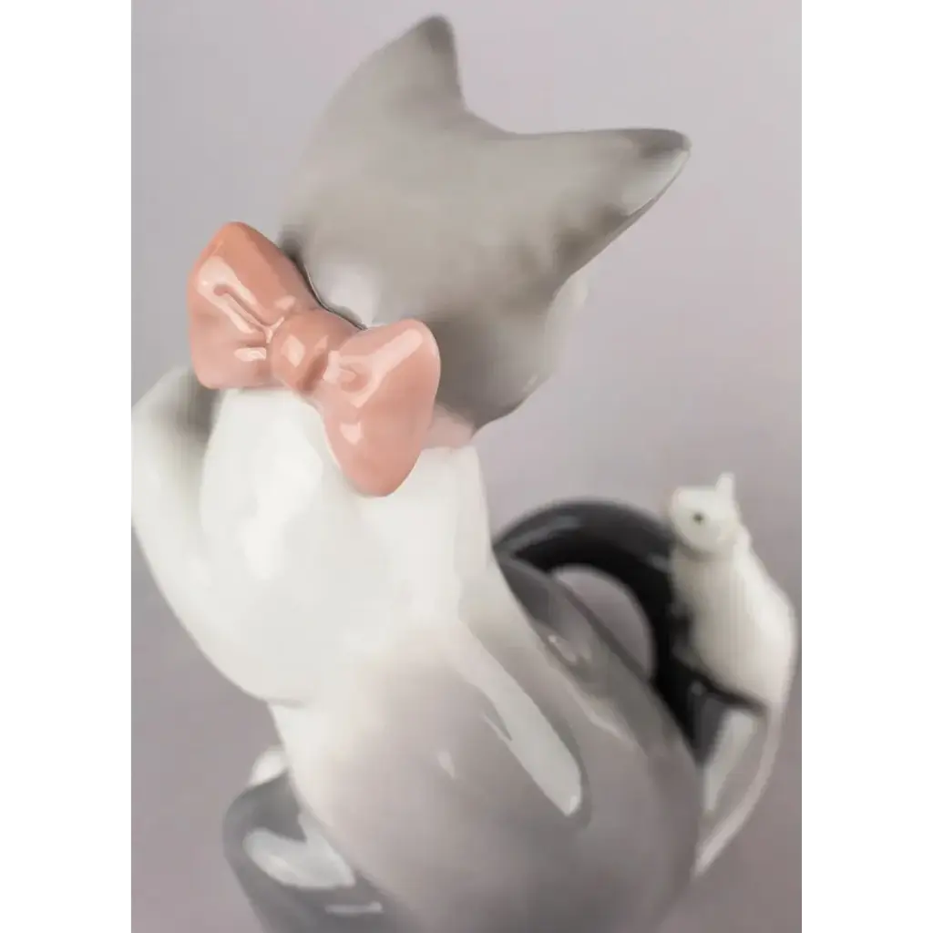 A humorous story told with simplicity, grace and tenderness. The kitten's surprise at discovering its new playmate is the plot of this charming piece of glossy porcelain, decorated in the classic Lladró pastel palette. An iconic Spanish brand, Lladro is a world leader in the creation of porcelain art. Started by brothers Juan, Jose and Vicente Lladro in 1953, the ceramic figurines were initially inspired by the works of great European manufacturers like Meissen and Sevres. Over time, a unique style was forged, consisting of elongated lines, a revolutionary single-firing method, and soft pastel tones.