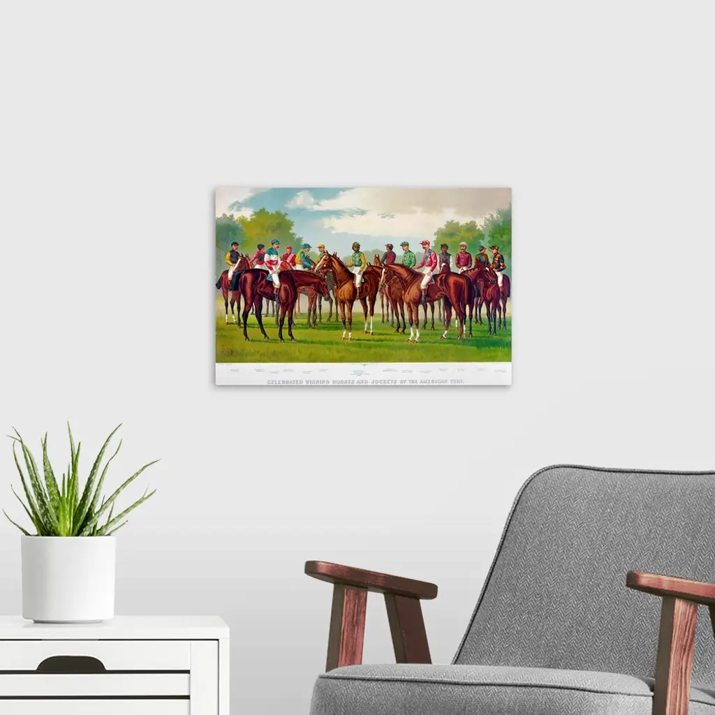 'Celebrated winning horses and jockeys of the American turf.' Lithograph by Currier and Ives, 1889.