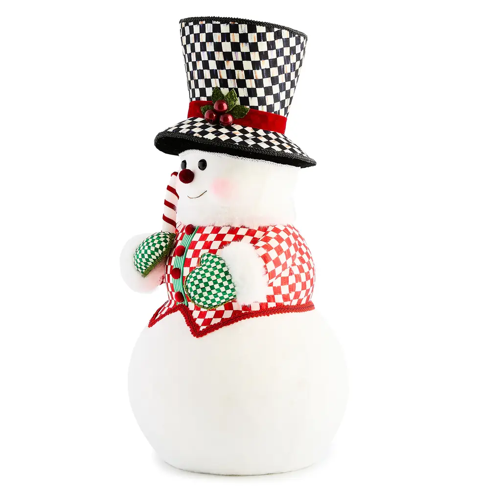 Add MacKenzie-Childs signature charm to your Christmas season with the Check It Out Fabric Snowman Figure. Our frosty friend wears a darling red checked vest, green checked mittens, and a top hat decked out in our iconic Courtly Check pattern. A wonderful gift or addition to your own holiday decor.