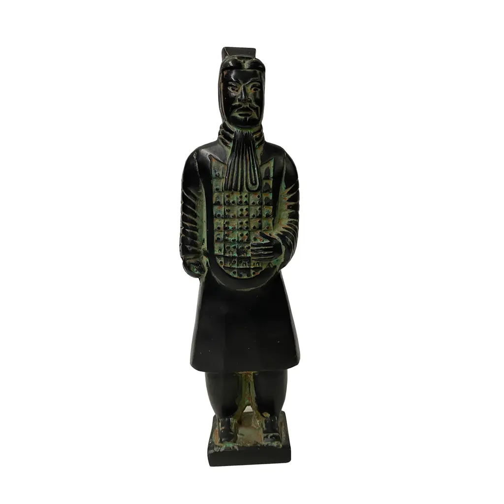 Chinese Black Green Rustic Ancient Artistic Terra Cotta Soldier Figure