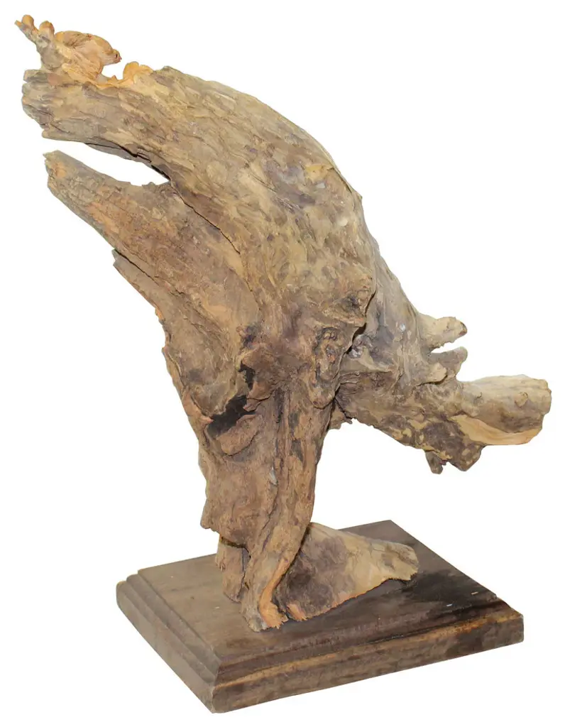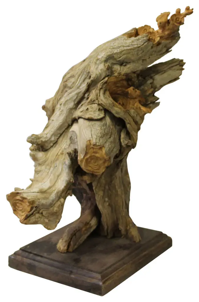 This is a handmade Chinese accent decorative figure of natural free form cypress stem carved with birds as an accent. Dimensions: 13" x 9"x h16"Origin: ChinaMaterial: CypressCondition: Handmade, natural wood imperfection and wood crackEra : Recent