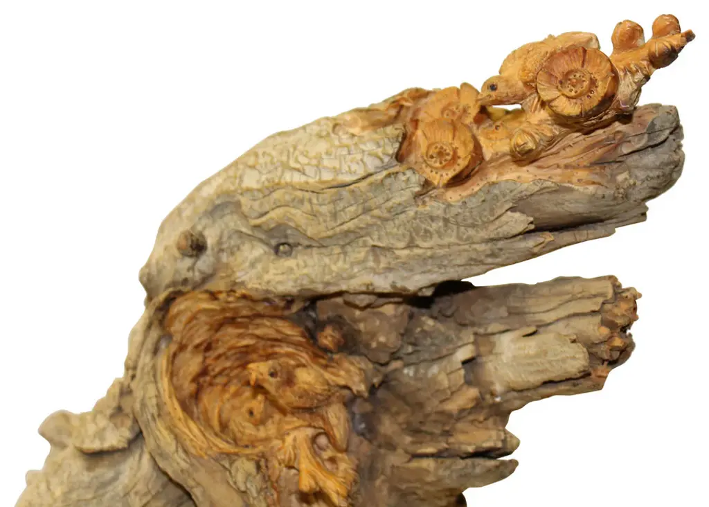 Chinese Cypress Raw Wood Carved Abstract Birds Theme Display Figure