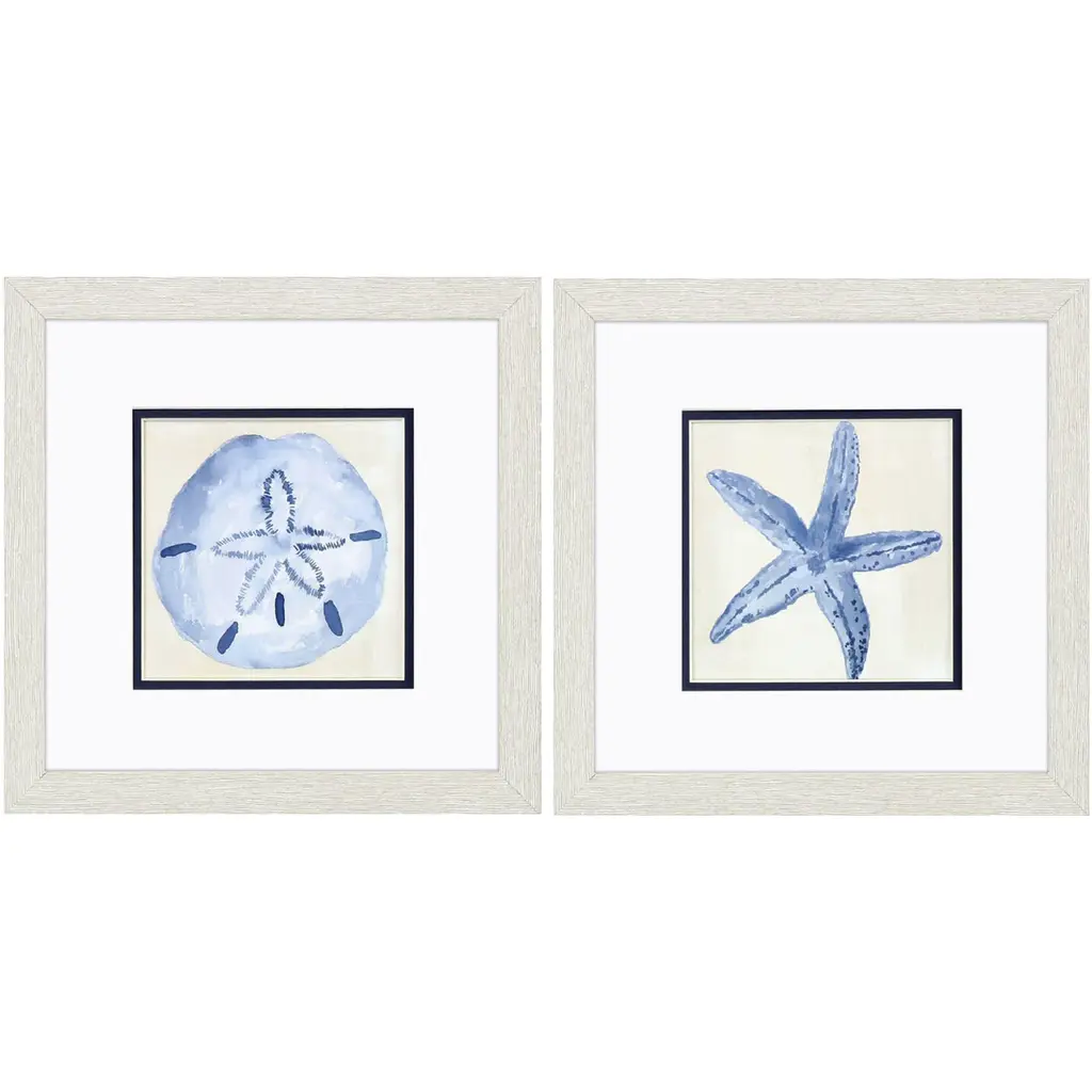 Clam Shell Sand Dollar Seahorse Blue Framed Art, Propac