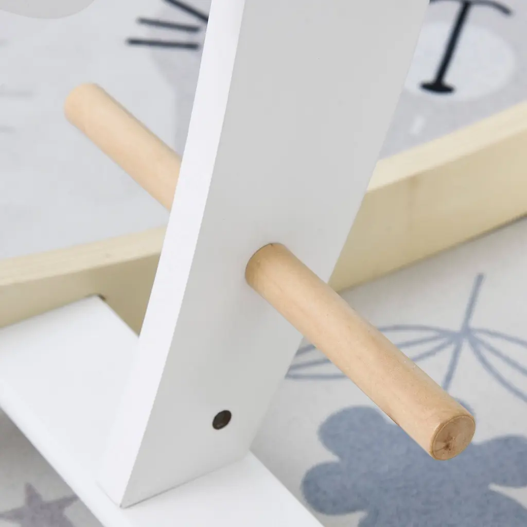 Classic Kids Rocking Horse With Handrails, Backrest & Wooden Base, Ideal For Toddlers 1-3 Years, Safe & Sturdy - White+guardrail