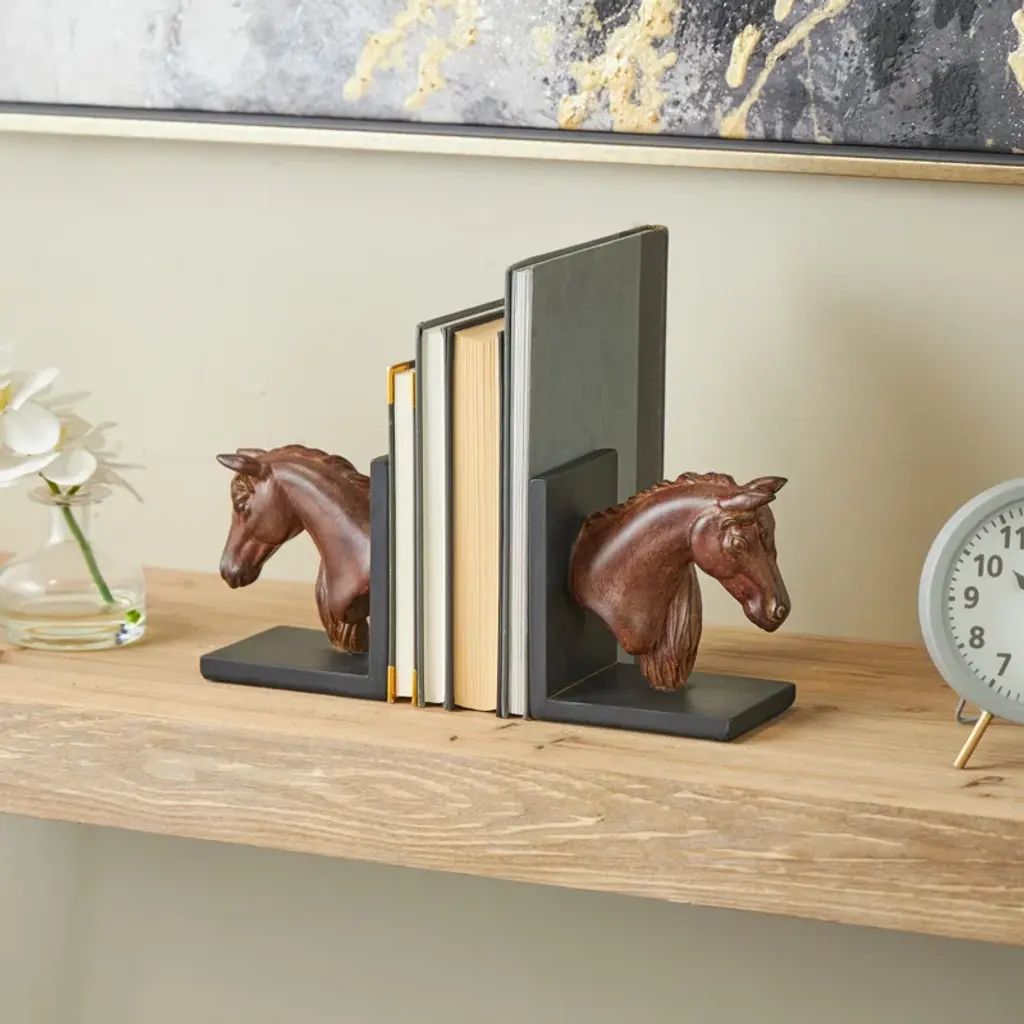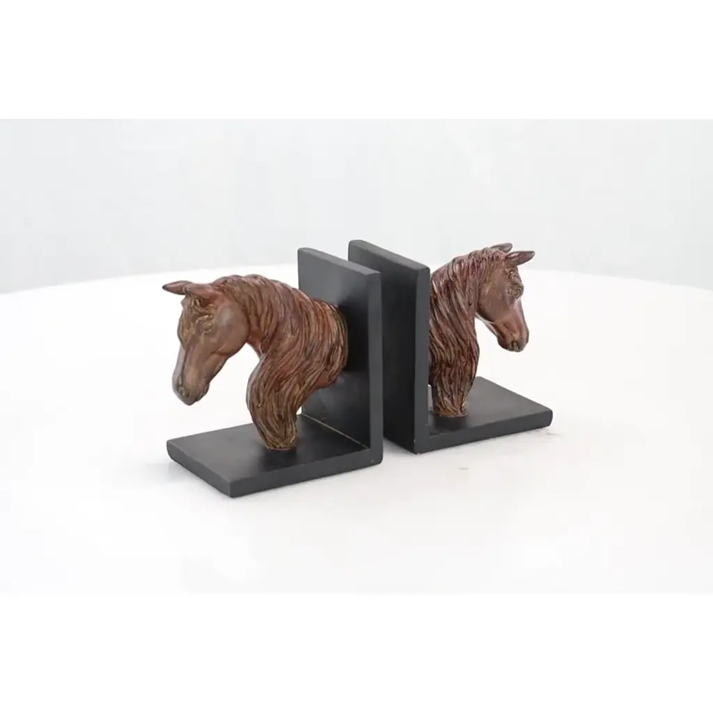 Cole And Grey Resin Head Horse Decorative Bookends With Black Stands (Set Of 2)