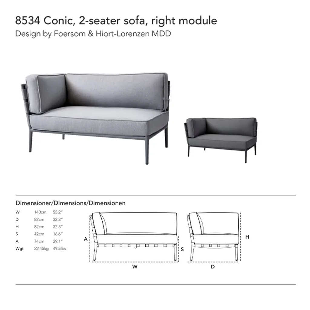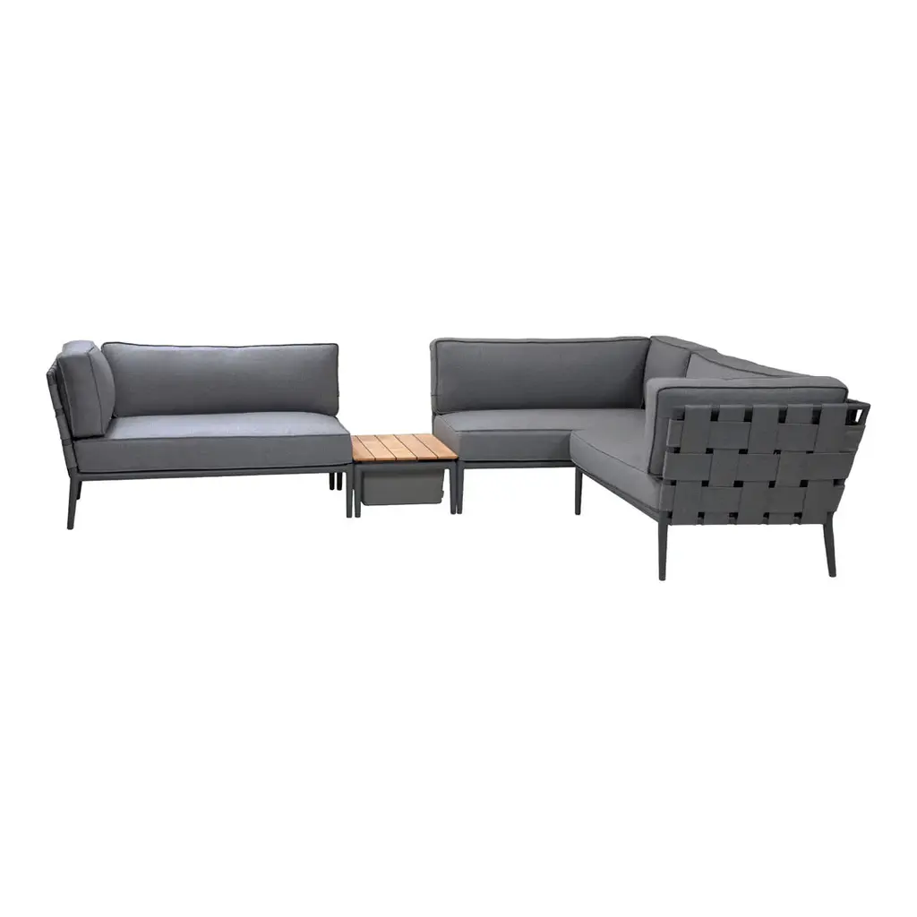 Conic Box fits perfectly with all Conic sofa modules and can be placed exactly where you want it in your lounge group. The product is designed to create an elegant table that radiates a warm feeling. The table top is made of teak, which is approved and cultivated according to the SVLK certification system. Conic box table is a multifunctional table which can also be used for storage of scatter cushions, blankets or books and magazines. The table requires minimal maintenance with teak oil if you want to preserve the colour and glow. Alternatively, the tree can be left without maintenance, which gives the tree a light grey patina expression after some time. Use the product as a side table for a glass of wine or a cup of coffee. Setup Includes: [2] 2-Seater Sofa (Left) [1] 2-Seater Sofa (Right) [1] Teak Outdoor Box Table