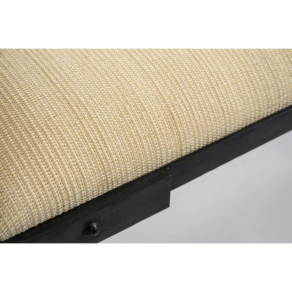 Contemporary Hand Carved Blackened Steel Bench With Handwoven Horsehair In White