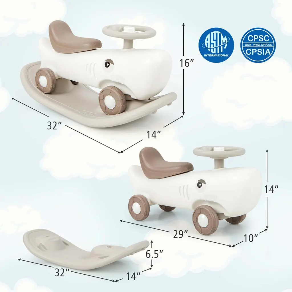 Convertible Rocking Horse & Sliding Car With Detachable Balance Board - Dark Grey