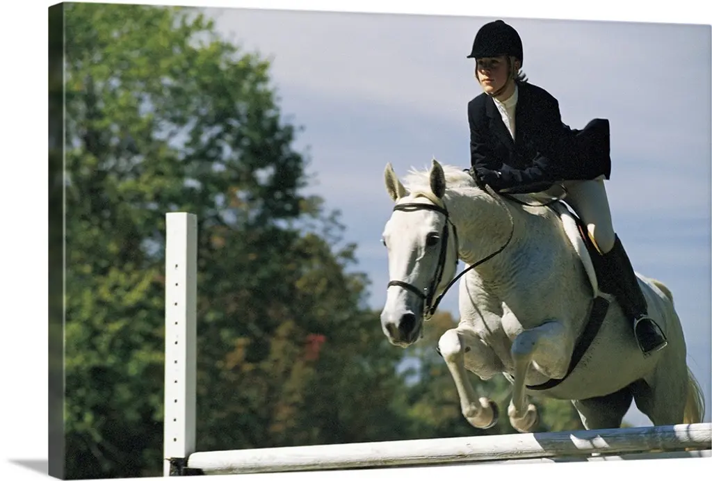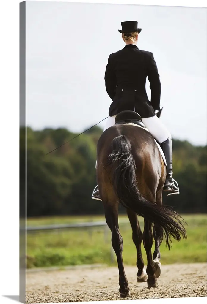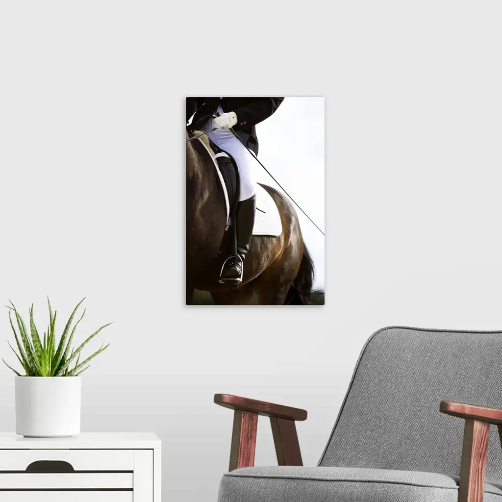 Detail of female dressage rider on horse wall art for home and office decor. Discover canvas art prints, photos, mural, big canvas art and framed wall art in GreatBigCanvas.com's varied collections.
