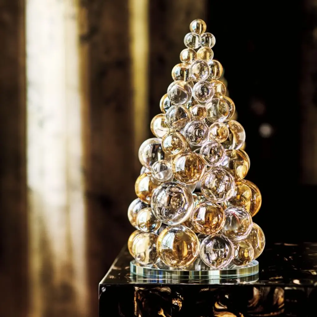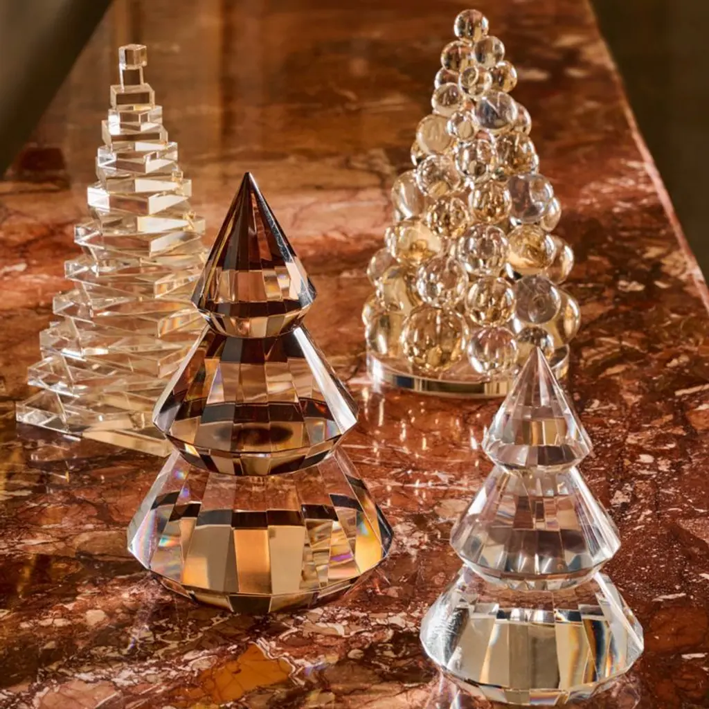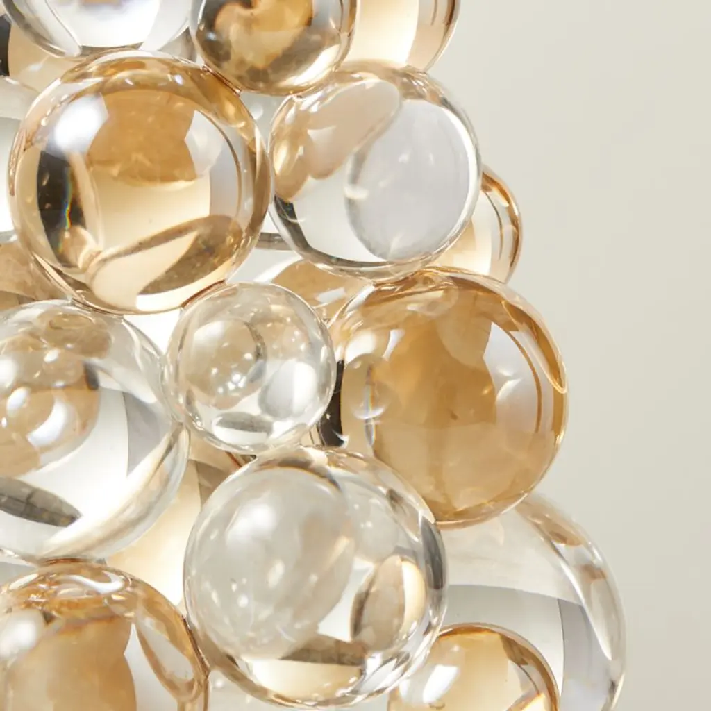 Breathtaking in its materiality, the Elle Christmas tree stacks crystal balls atop each other to create a dazzling display. Made with K9 crystal, which is often chosen for chandeliers due to its high optical clarity, the tree is tinted with amber tones for a mesmerizing decorative moment. Display with the 8.25" Elle crystal Christmas tree. CB2 exclusive.