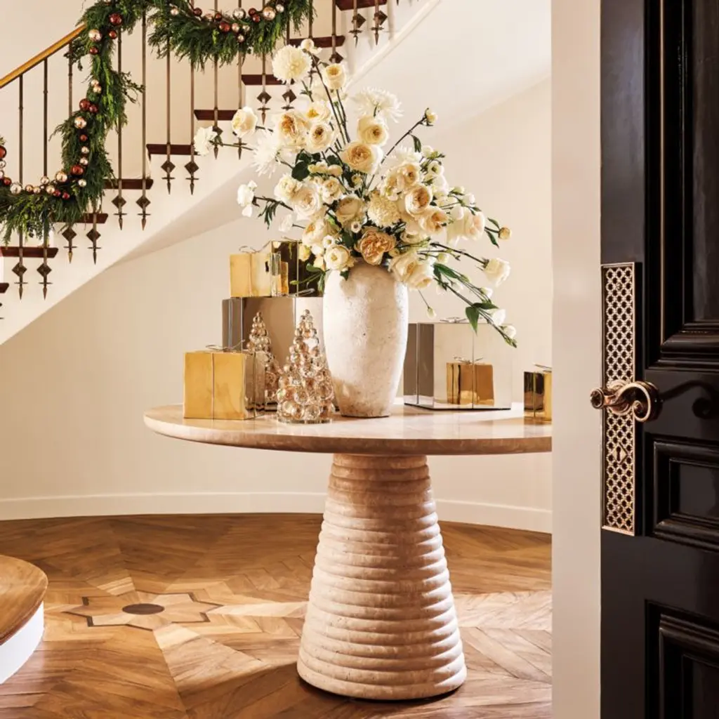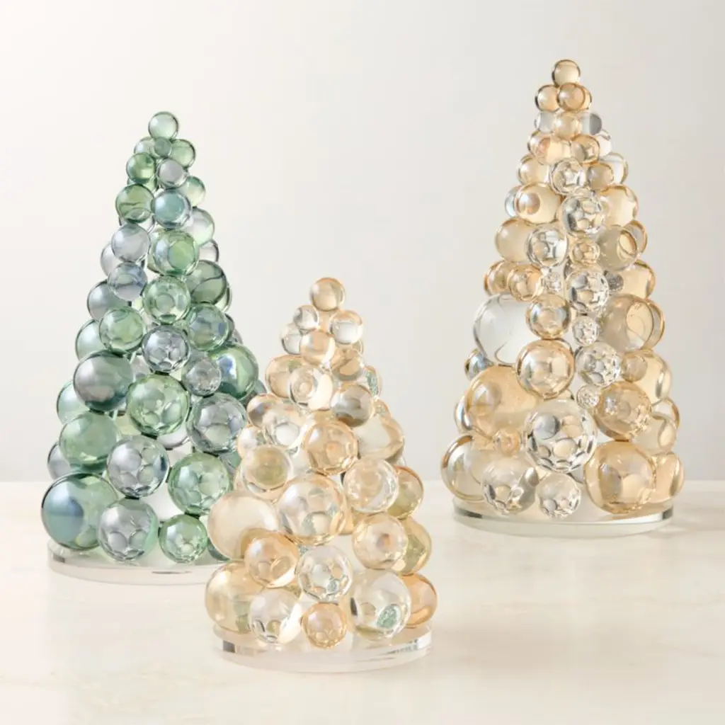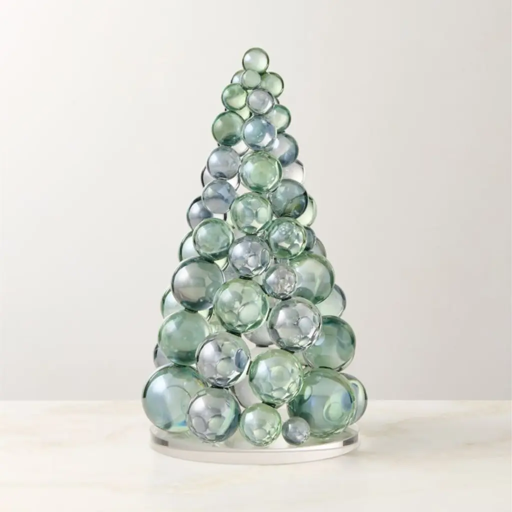 Breathtaking in its materiality, the Elle Christmas tree stacks crystal balls atop each other to create a dazzling display. Made with K9 crystal, which is often chosen for chandeliers due to its high optical clarity, the tree is tinted with amber tones for a mesmerizing decorative moment. Display with the 8.25" Elle crystal Christmas tree. CB2 exclusive.