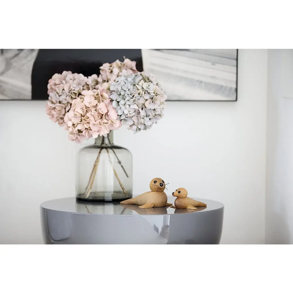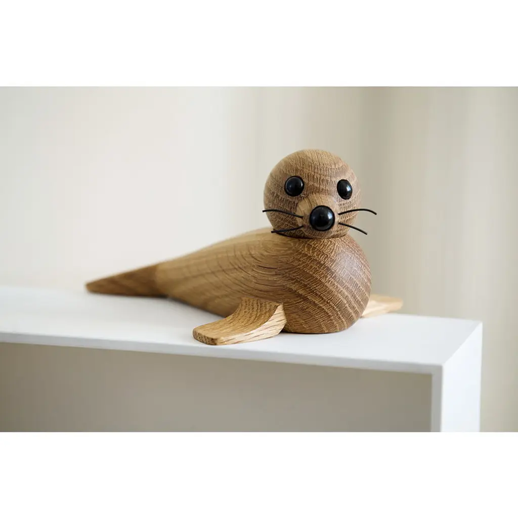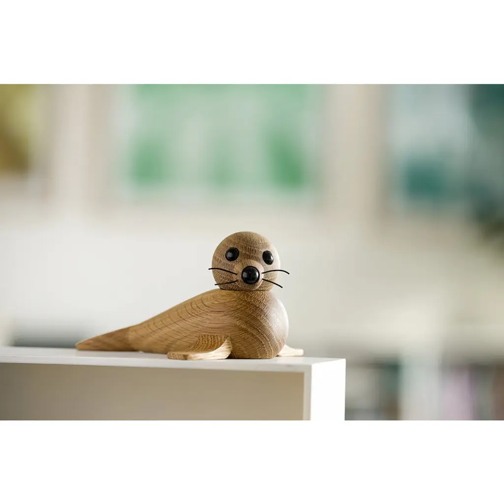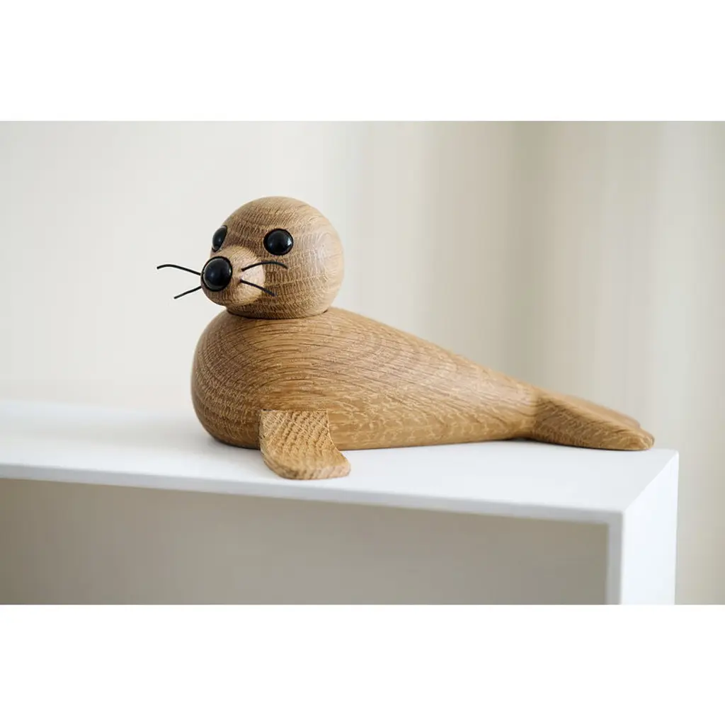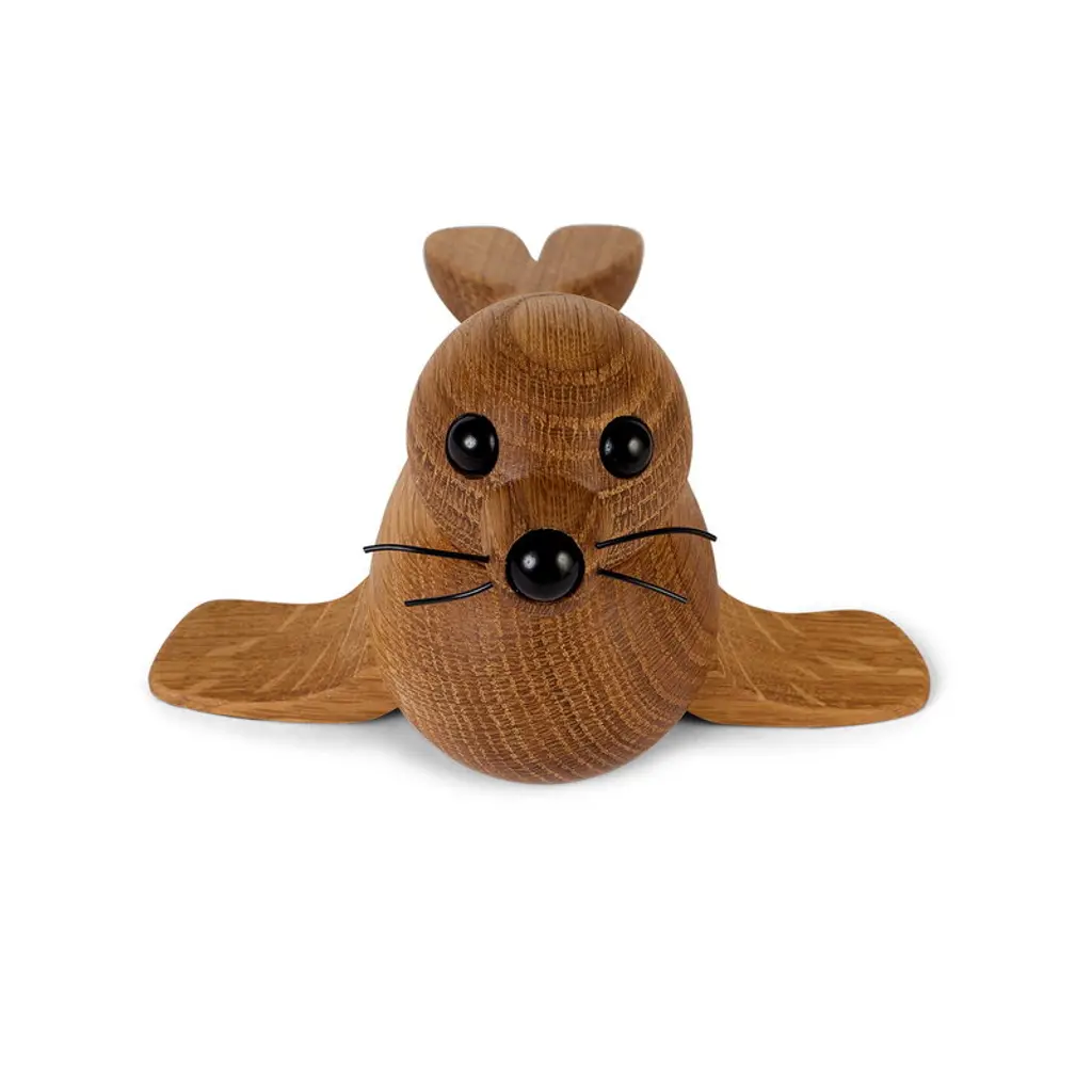 The Female Seal figurine is a beautiful handmade oak ornament that charms children and adults alike. The mother seal’s rotating head allows you to turn its gentle gaze in any direction you want. Chresten Sommer’s wooden seals originated when Sommer, inspired by Kay Bojesen's wooden animal figures, began to design a wooden polar bear. However, during the carving process he changed his mind - the figure had begun to resemble a seal. After shaping the seal's body, with flippers and all, he added eyes and whiskers, and that’s how his first seal was created.
