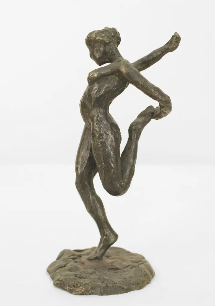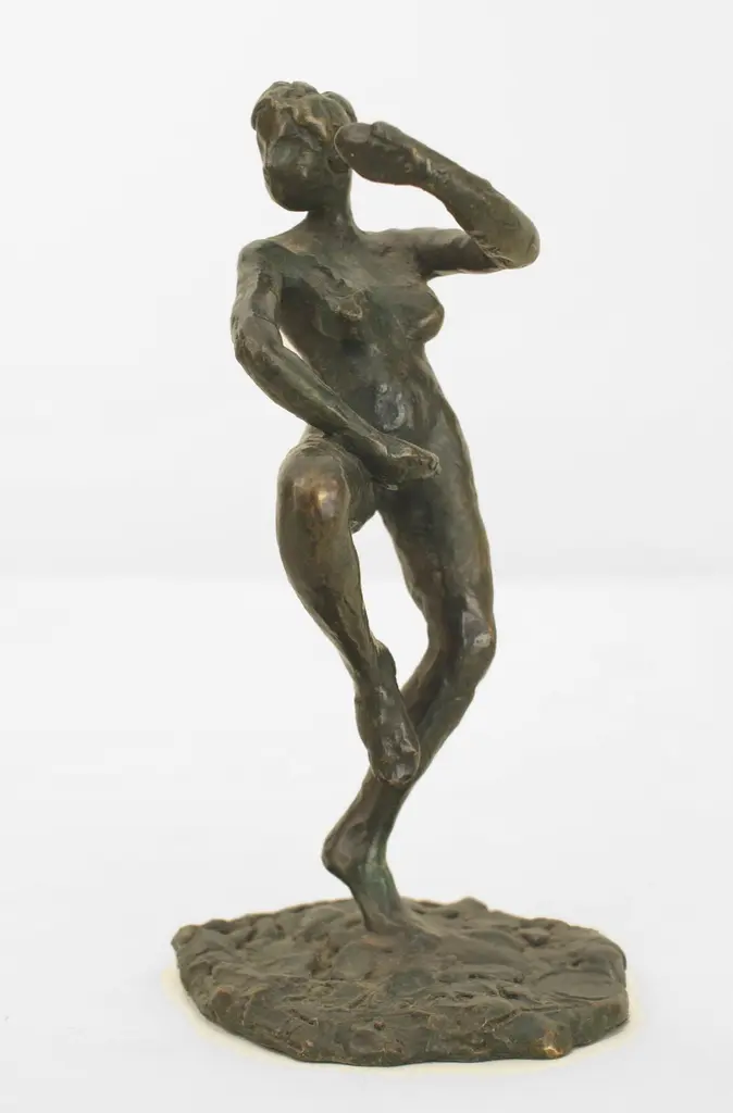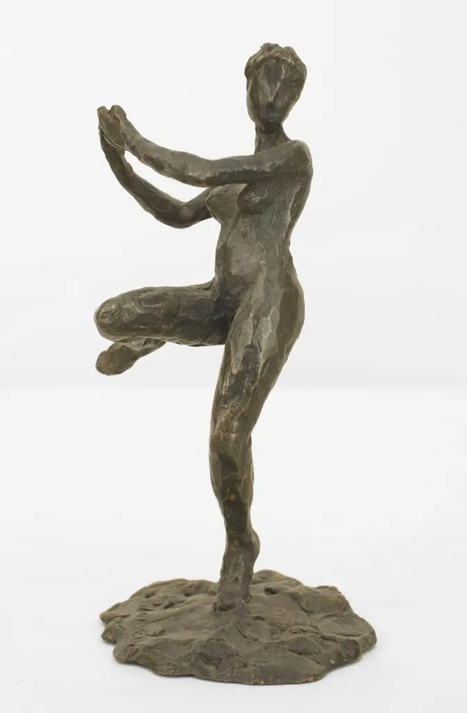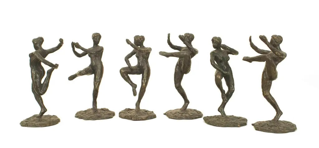 5 French Post-War Design (1980/90s) bronze individually stylized female figures in poses standing on one foot on a round shaped base (signed LaROCHE) (PRICED EACH)