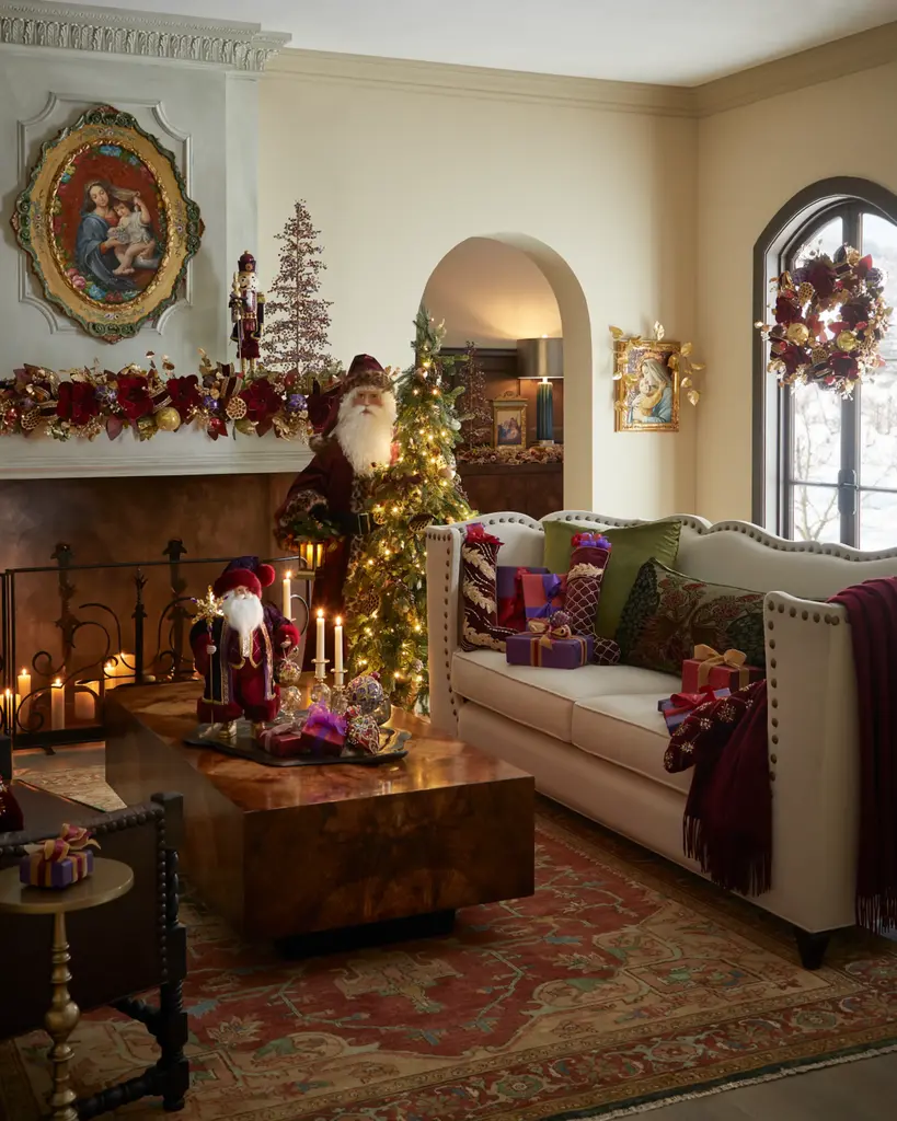 Holiday figurine handcrafted of fiber polyresin and sisal Hand painted and gold leafed Indoor only Approx. 6"L x 5"W x 17"T Imported undefined