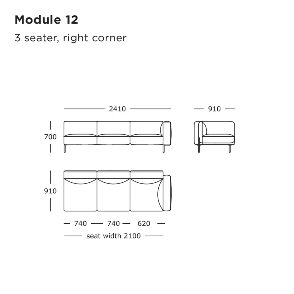 Defined by the nearly monolithic lines that make it pose as if carved in stone, the modular Hang Sofa comes with a copious form that like a paradox plays off elegantly with its slender yet strong steel frame and deep seat. Setup Includes: [1] Module 13 - Chaise, Long, Left [1] Module 12 - 3 Seater, Right Corner