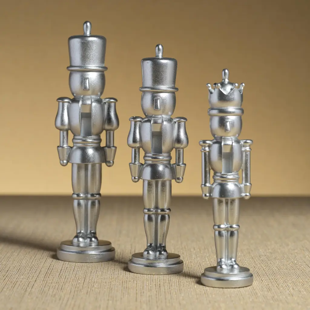 Hartwin Small Silver Metallic Decorative Nutcracker Figurines, Set Of 2