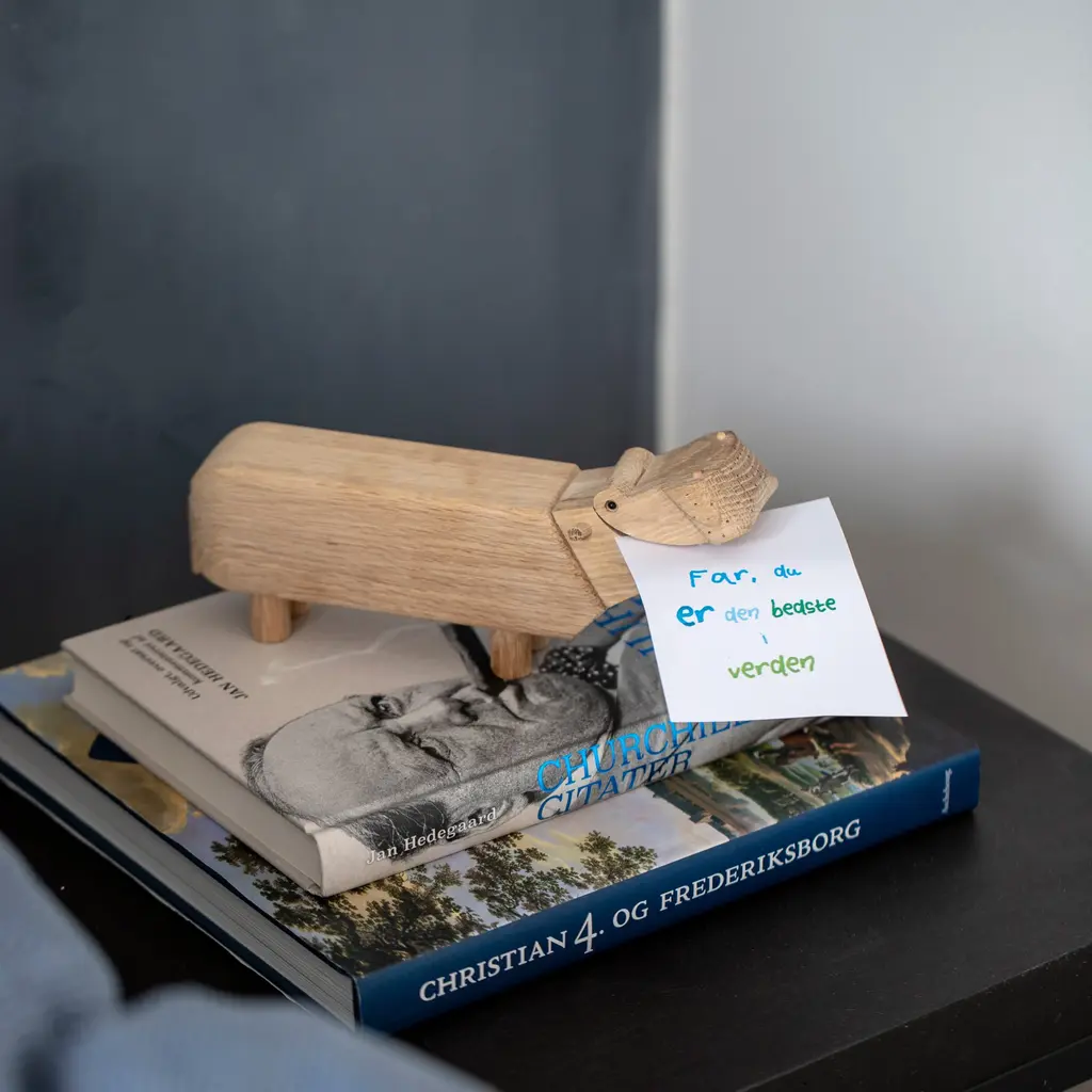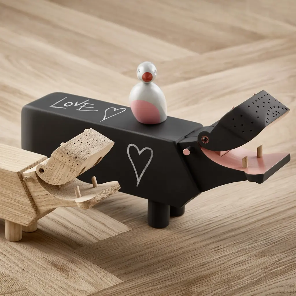 The Hippo was born in 1955 as a fun desktop item for managing pencils. Kay Bojesen's imaginative family of wooden figurines has a very special appeal for both children and adults. For christenings, birthdays, school leavers, anniversaries, and weddings. A classic and a dear friend for life – from being a popular interior piece in the playroom to a much-loved design icon in a future home. Features