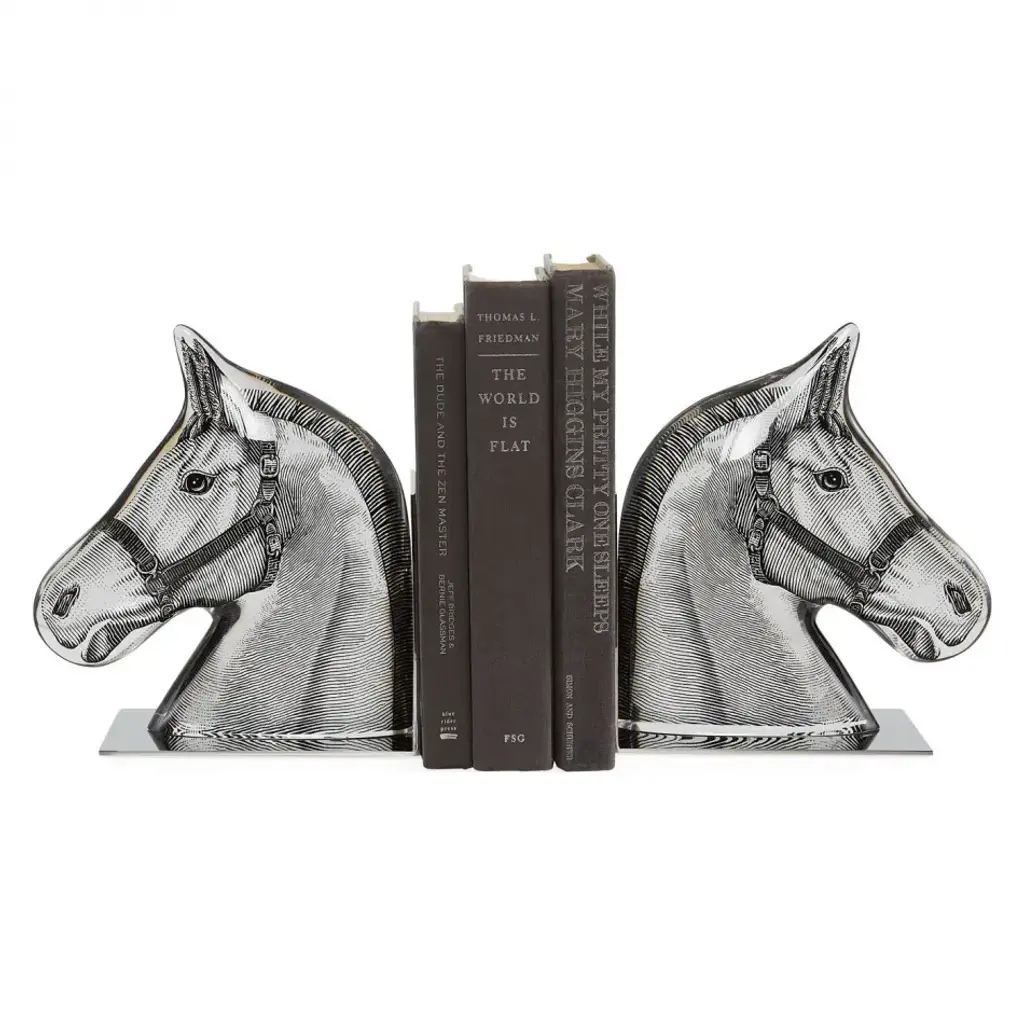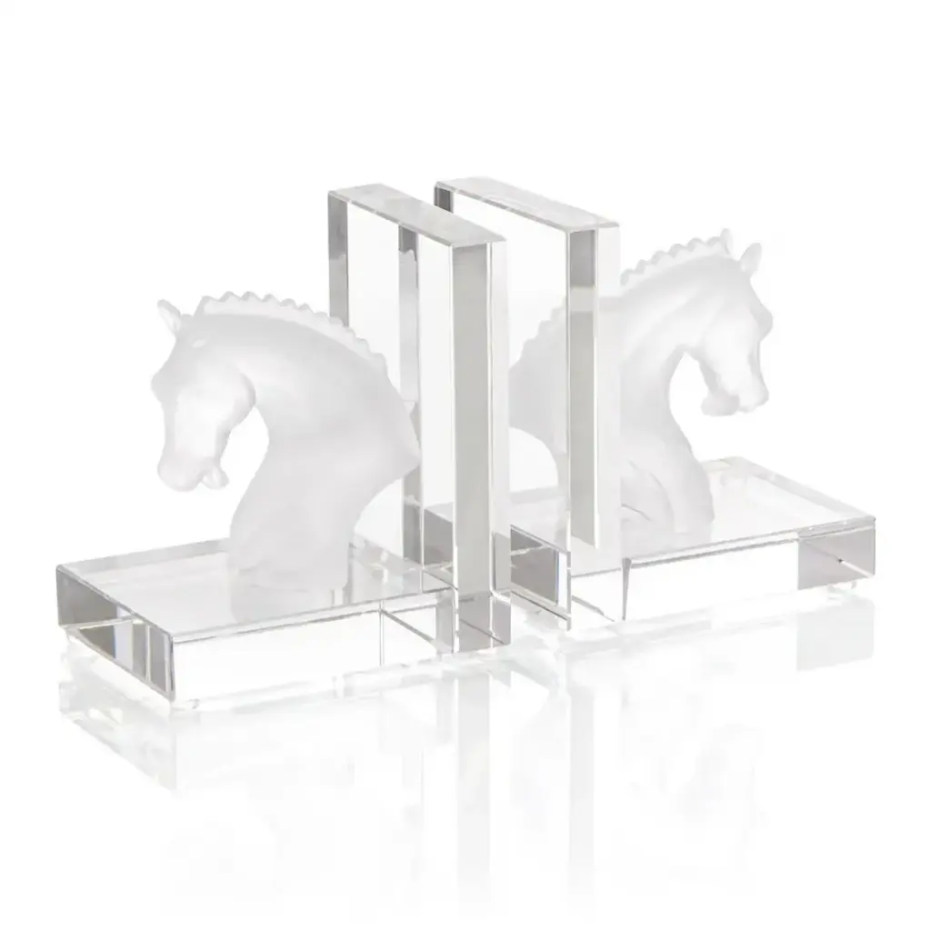 Equine Elegance.Lift up your literature with our Horse Bookends. Each features an L-shaped polished nickel base supporting a stately acrylic stallion. Wildly chic with a silver tone, they're poised to take charge of your toppling tomes.