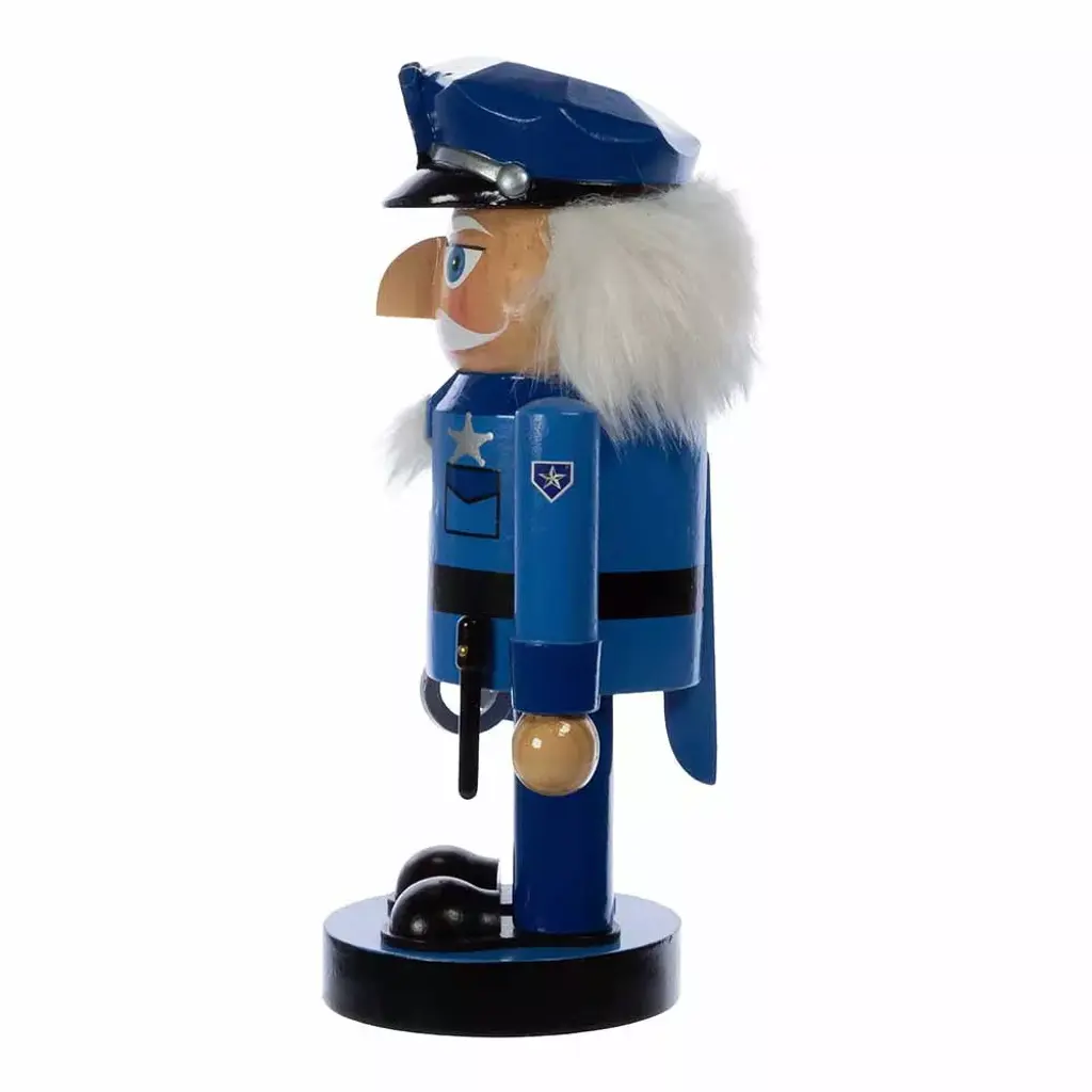 This 10-Inch Wooden Police Nutcracker from Kurt S. Adler is a festive addition to any home or office holiday décor. It features a saluting nutcracker in a blue police uniform with a pair of handcuffs at his hip. This is a part of the Kurt S. Adler Nutcracker collection. A unique piece to add to your nutcracker collection.