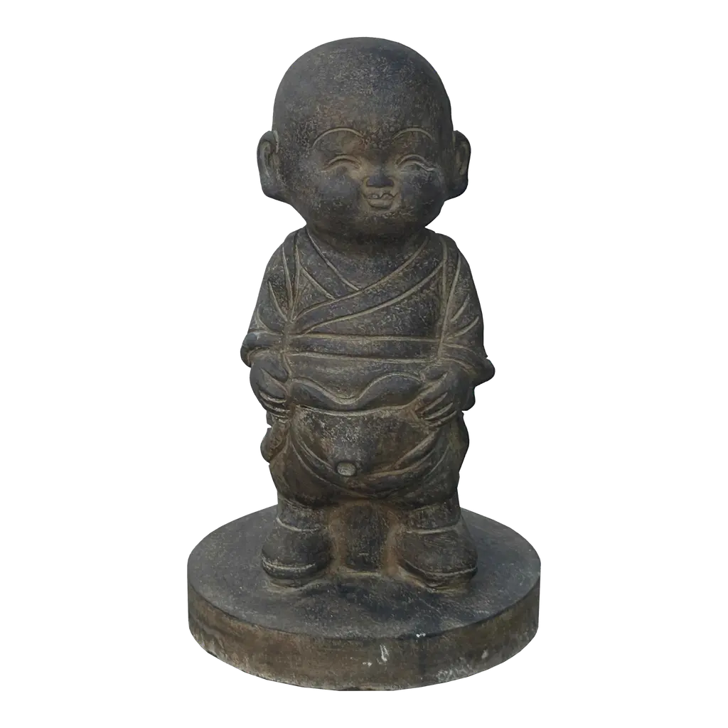 This is a set of 3 large size decorative stone figures of a kid lohon monk figure with two stone pattern color finish. Do No Evil PostureDimensions: Dia 11" x h20" eachOrigin: ChinaMaterial: StoneCondition: Natural stone marks, may have minor chip marks at the bottomUS domestic continental buyer of 48 states pays $395 shipping charge for curbside delivery. Customer from New York, Hawaii, Alaska, US Island, Florida Keywest, and Canada pays extra shipping cost. Insurance and handling charge are already included in the shipping cost. In-store pick-up is highly welcomed if you are in San Francisco Bay Area. (No charge) White-Glove (4-8 weeks transit) service can be arranged with additional cost - needs quotation based on the destination.When your shipment is delivered, carefully inspect the outside of the packaging before the delivery personnel leave. It is important to clearly indicate if there is any visible damage to the packaging or items on the delivery paperwork. Carriers usually do not honor concealed damage claims so it is crucial to clearly indicate any visible damage to the packaging or items on the delivery paperwork.