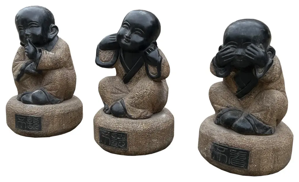 Large Set 3 Black Gray Brown Stone Kid Monk Lohon Do No Evil Figures Hcs7658a
