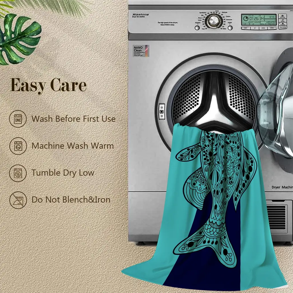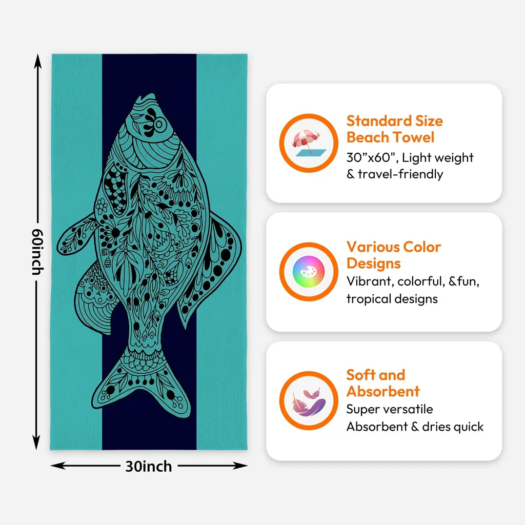 Large Turtle Shark Seahorse Beach Towel Pool Swimming Towels 30" X 60", 35"x70" - Fish - 35"x70"