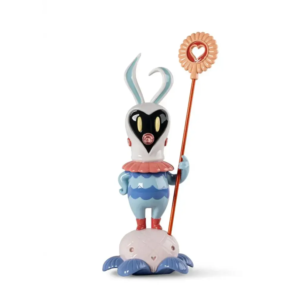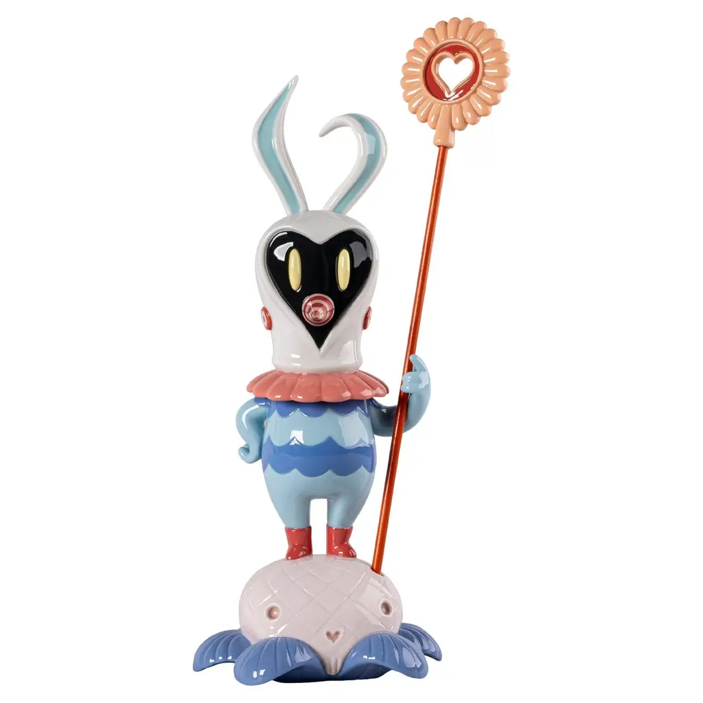Glossy porcelain figurine designed by Jaime Hayon with modern design and touches of gilded sheen highlighting the red heart and shoes and blue pedestal. Like all the pieces in Jaime Hayon's The Fantasy collection, this creation arises from the fusion of a classic Lladró theme such as love and the playful sense and fantasy that the Spanish creative Jaime Hayon brings to his designs. This imaginative and surprising representation of a lover shows the elegant and casual look that surrounds the entire collection.