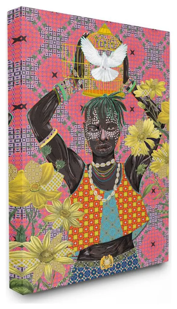 Male Figures With Florals Over Geometric Patterns2-Piece, 24x30