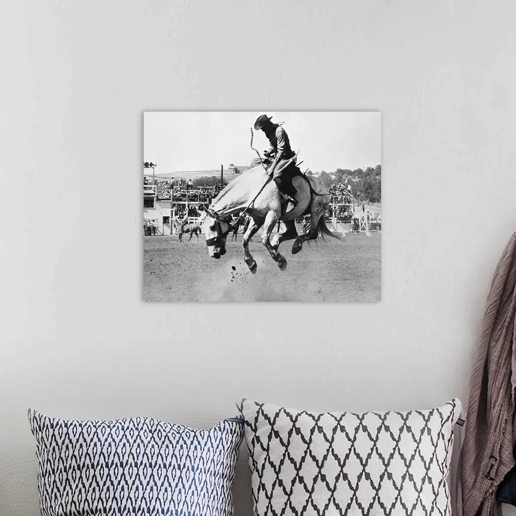 Man riding bucking horse in rodeo wall art for home and office decor. Discover canvas art prints, photos, mural, big canvas art and framed wall art in GreatBigCanvas.com's varied collections.