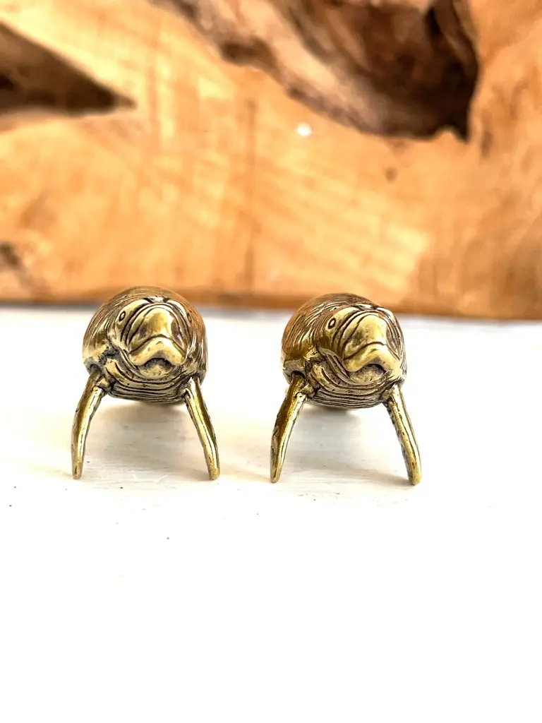 Miniature Pair Of Vintage Brass Manatee Figurines