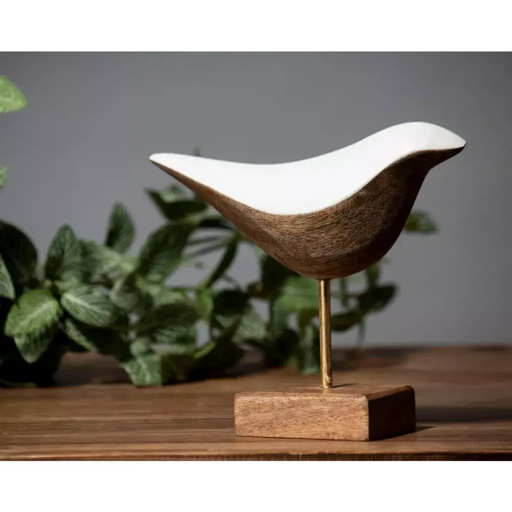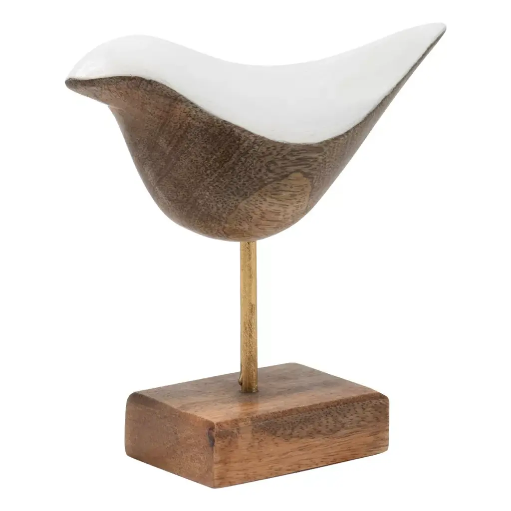 Hand carved from mango wood by artisans in India, the Esme Bird Figurine has a sleek multicolored modern design that is balanced with natural mango wood for a casual vibe. This bird figurine is a small piece that can make a big impact as a decorative accent by adding some modern charm.