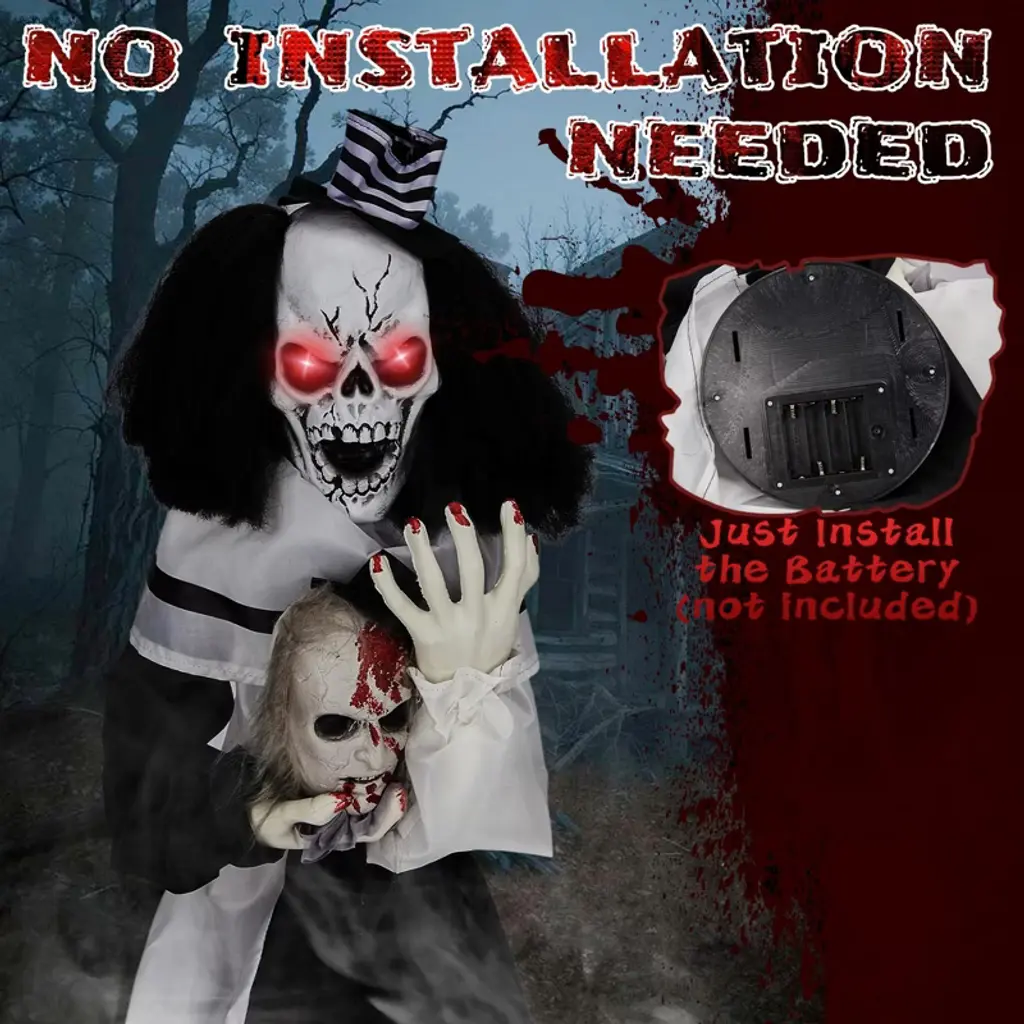 NAYSAYE adds playful fun to Halloween with this interactive clown figurine. Perfect for tabletops porches or garden displays it features moving parts and sound effects that engage and delight guests. Compact size makes it easy to place in small spaces while bringing festive energy to any setting. Durable materials allow versatile indoor or outdoor decoration making it a lively addition to Halloween celebrations.