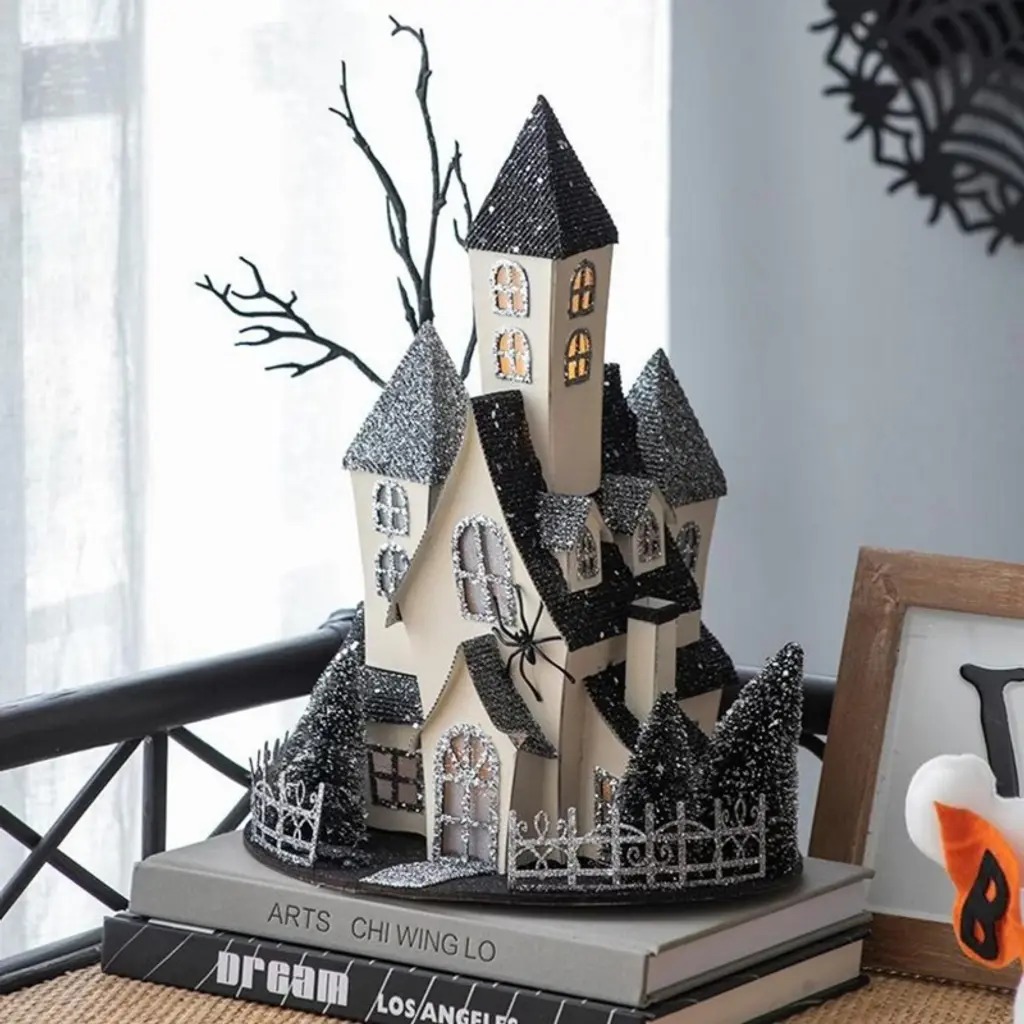 Naysaye Party Decoration And Accessories Haunted House Figurine For Halloween Tabletop And Home Decor, Beige And Black, 10"*8.3"*13.5"