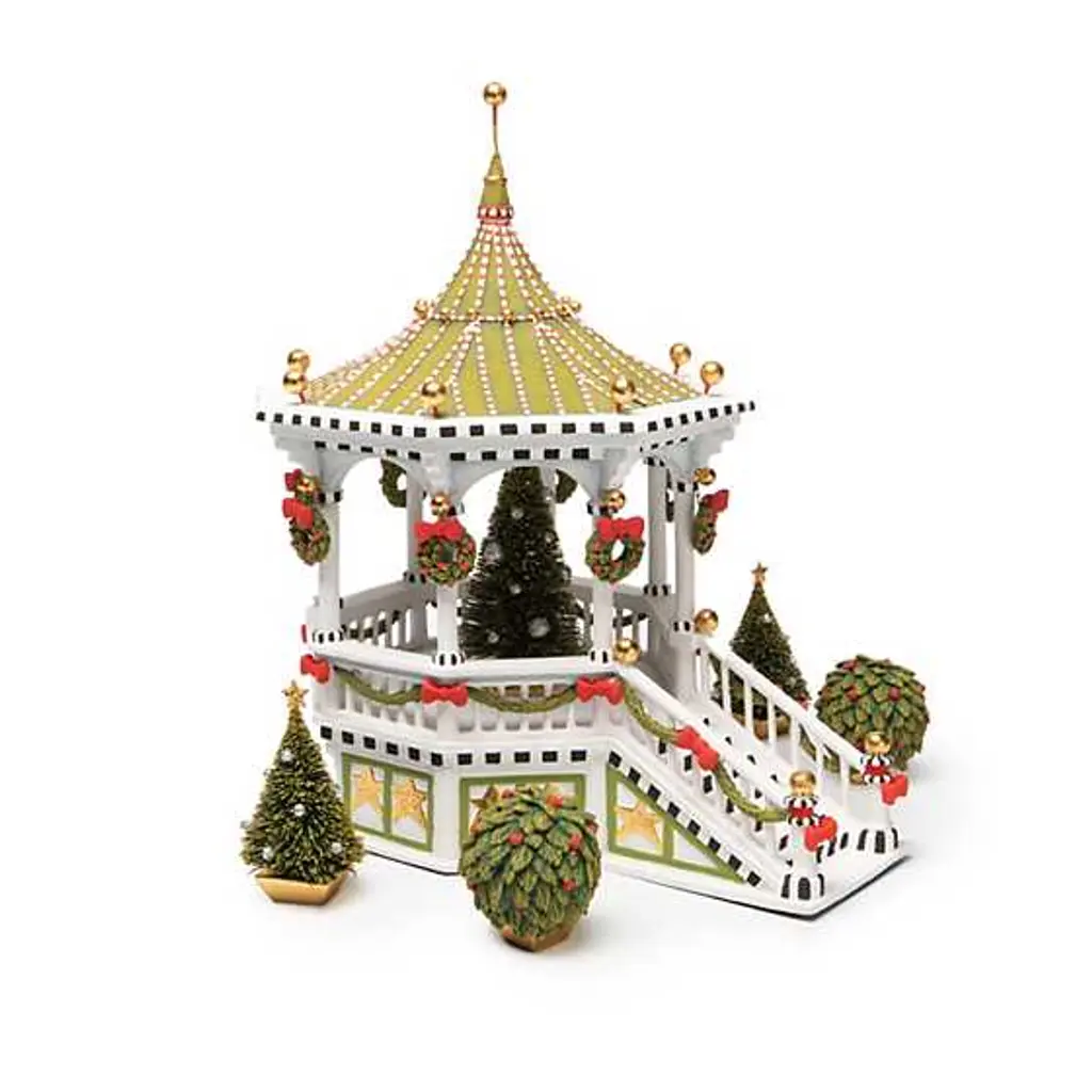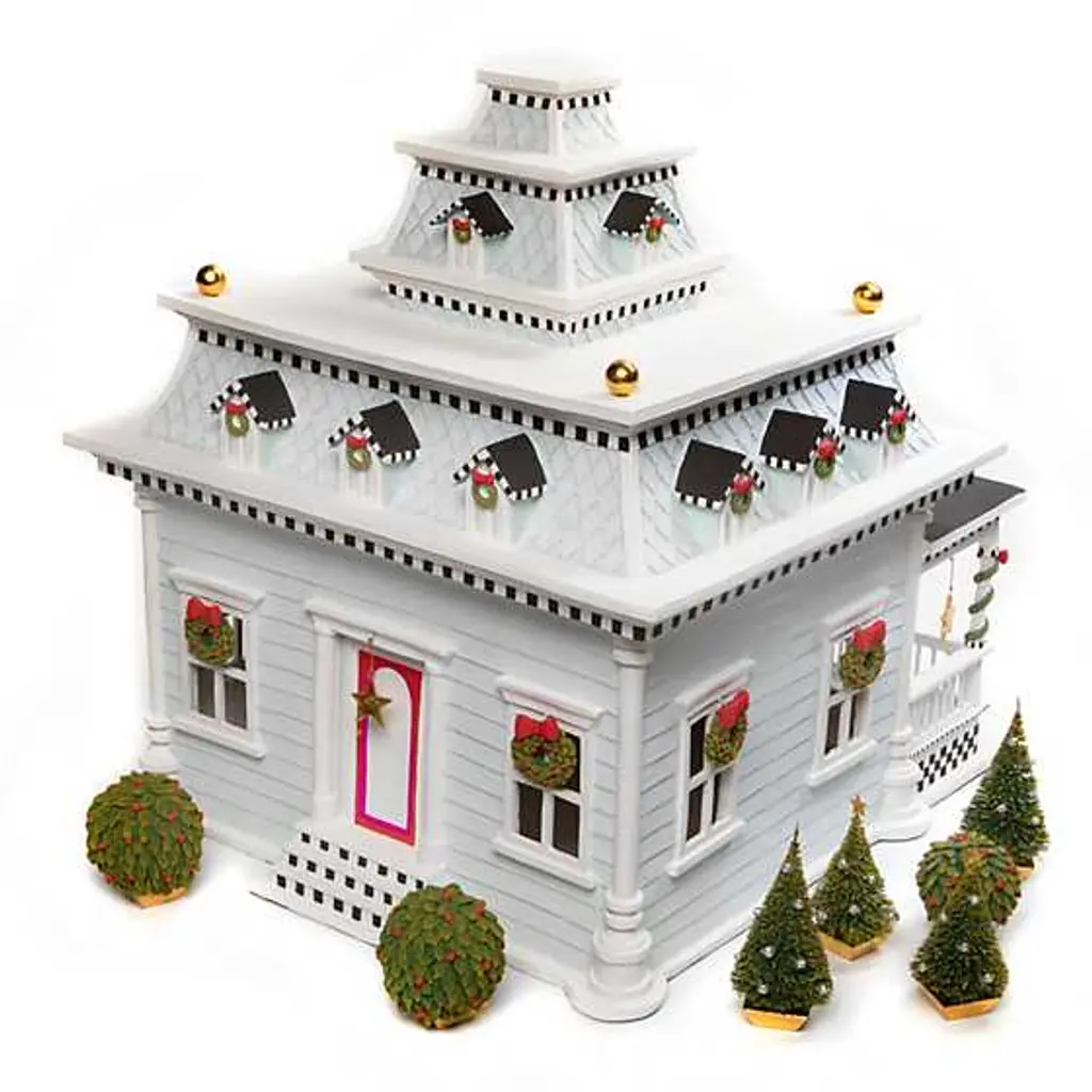 The Patience Brewster Caroler House Display is inspired by small-town holiday festivities. This handmade and hand-painted home is merry and bright, decked with garlands, wreaths, and bows. It includes four bottle brush trees and three berry bushes and is the perfect place to present the Patience Brewster Caroler Trio (sold separately).